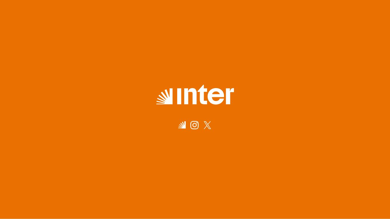 Banking Credit BNPL Pix credit FGTS Loans Public and Private Payroll Loans Credit Card Mortgage Home Equity Business Credit Investments National and international investment platform Meu Porquinho Fixed income and equities Savings Accounts Private Pension Shopping Marketplace Travel Duo Gourmet Recarga Shell Box Inter Cel Gift Card Vida Sustentável Loop Exchange points for : Miles Dollar Discount on invoice Extra cashback Direct Cashback on invoice Investments in Meu Porquinho Access to Vip lounges Insurance Life insurance Pix insurance More protected credit card insurance Travel insurance Residential insurance Dental plan Pet insurance Global Global account Exchange International transfers Giftcards Debit card Investments Mortgages Dollar credit card 10 Digital Account Pix Kids Account Credit Card Inter Business Global Account Our Ecosystem Corporate GovernanceCorporate Governance ESGESG Vision for the futureVision for the future AttachmentsAttachments About InterCoAbout Inter&Co