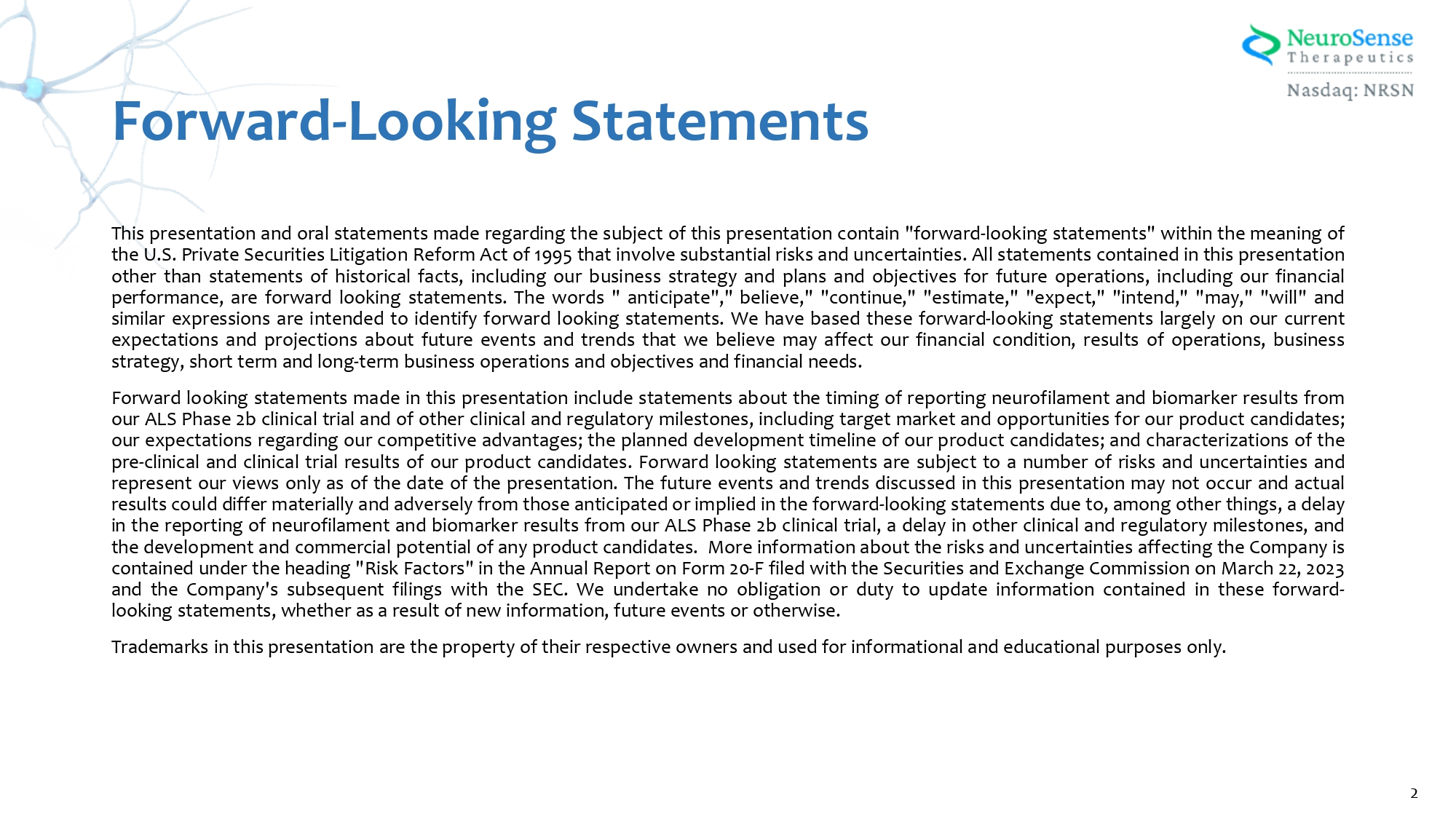 EX-99.1 2 ea191333ex99-1_neurosense.htm PRESENTATION, DATED JANUARY 2024