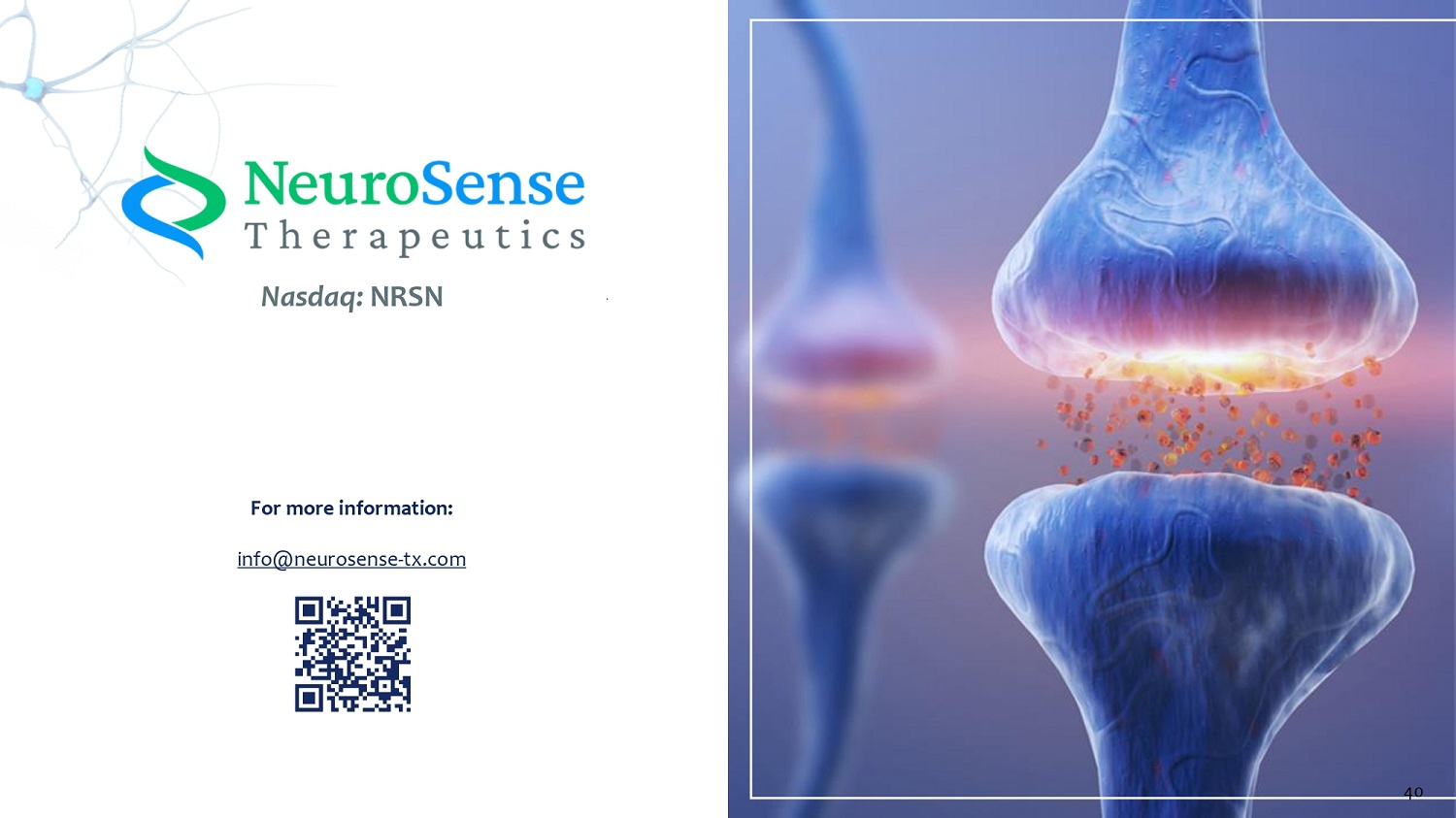 Nasdaq: NRSN Thank You For more information: info@neurosense - tx.com 40