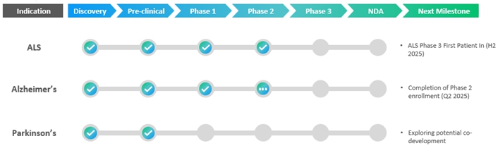 We are a clinical-stage biotechnology company focused on discovering and developing treatments for people living with neurodegenerative diseases, including ALS AD and PD. We believe these diseases represent some of the most significant unmet medical needs of our time, with limited effective therapeutic options available. The burden of these diseases on both patients and society is substantial. For example, the average annual cost of ALS alone is $180,000 per patient, and its estimated annual burden on the U.S. healthcare system is greater than $1 billion. Due to the complexity of neurodegenerative diseases, our strategy is utilizing a combined therapeutic approach to target multiple disease-related pathways.