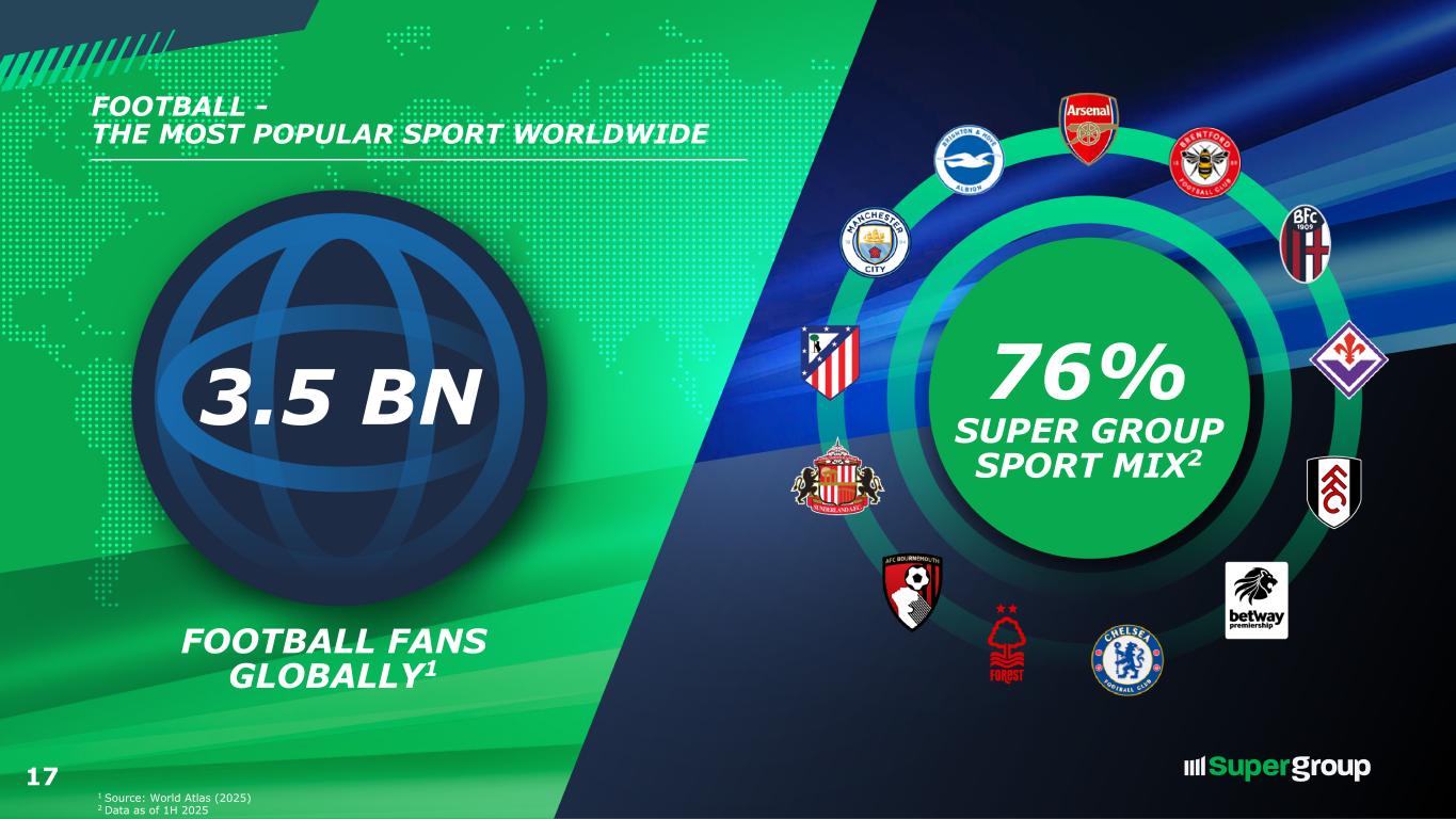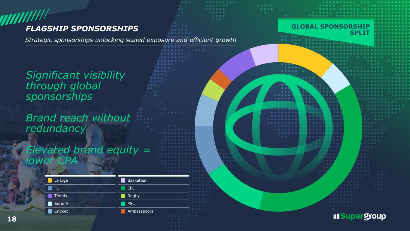 17 FOOTBALL - THE MOST POPULAR SPORT WORLDWIDE 3.5 BN FOOTBALL FANS GLOBALLY1 76% SUPER GROUP SPORT MIX2 1 Source: World Atlas (2025) 2 Data as of 1H 2025