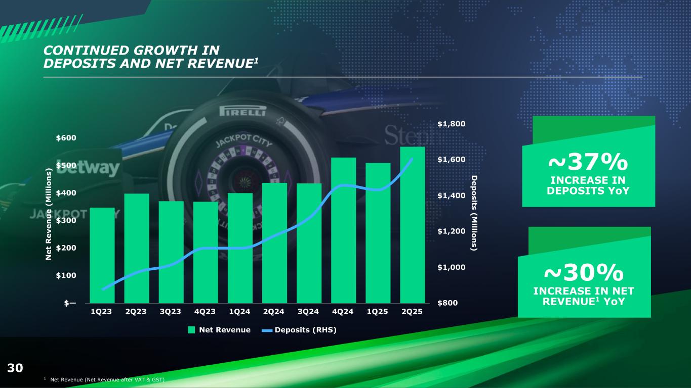 ~57% INCREASE SINCE 1Q-23 29 ~21% YoY INCREASE SUSTAINED GROWTH IN MONTHLY ACTIVE CUSTOMERS 3.5 3.7 4.0 4.7 4.7 4.5 4.7 5.3 5.4 5.5 1Q23 2Q23 3Q23 4Q23 1Q24 2Q24 3Q24 4Q24 1Q25 2Q25 0.0 1.0 2.0 3.0 4.0 5.0 6.0 Average Unique Monthly Active Customers (millions)