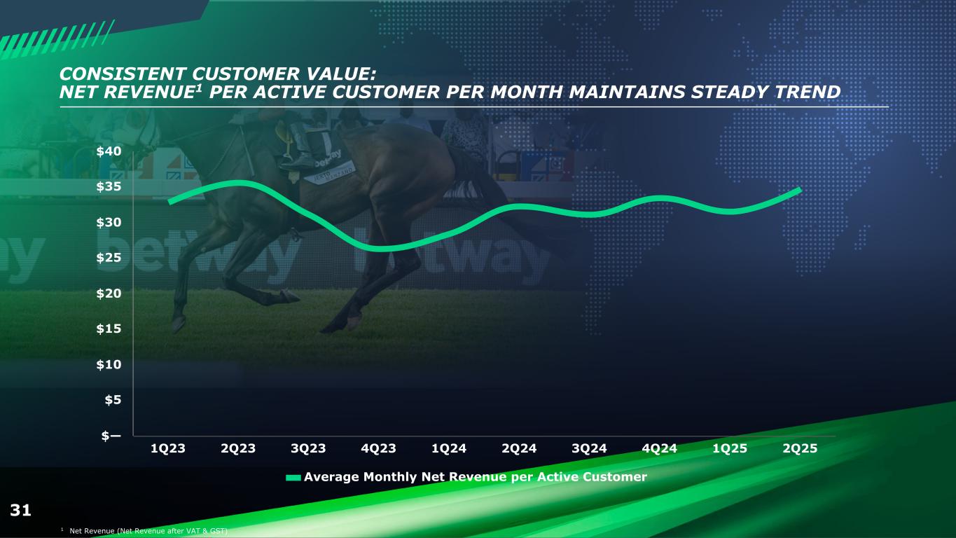 N et R ev en u e (M ill io n s) D ep osits (M illion s) Net Revenue Deposits (RHS) 1Q23 2Q23 3Q23 4Q23 1Q24 2Q24 3Q24 4Q24 1Q25 2Q25 $— $100 $200 $300 $400 $500 $600 $800 $1,000 $1,200 $1,400 $1,600 $1,800 CONTINUED GROWTH IN DEPOSITS AND NET REVENUE1 ~37% INCREASE IN DEPOSITS YoY 30 ~30% INCREASE IN NET REVENUE1 YoY 1 Net Revenue (Net Revenue after VAT & GST)