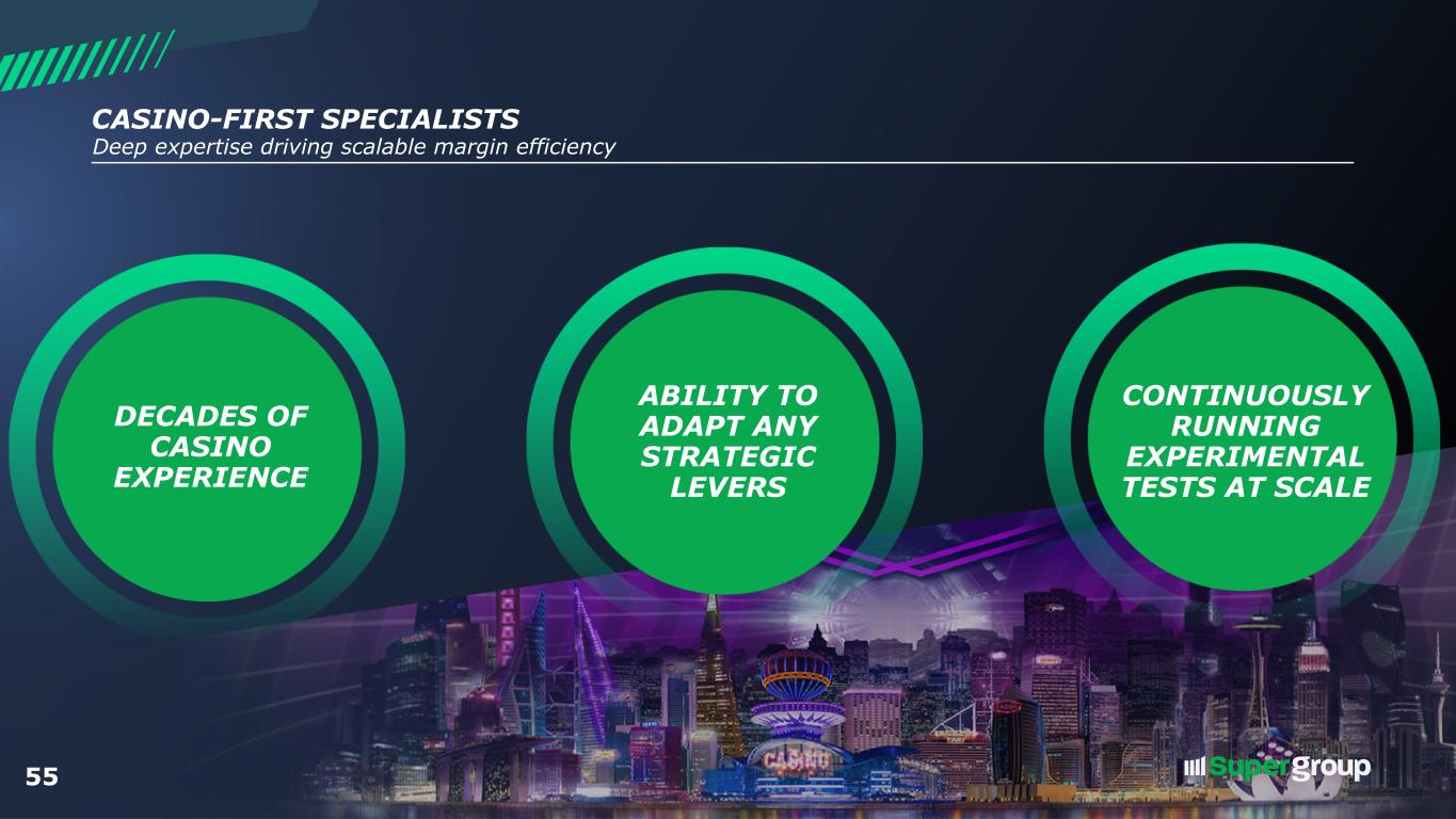 CASINO-FIRST SPECIALISTS Deep expertise driving scalable margin efficiency 55 ABILITY TO ADAPT ANY STRATEGIC LEVERS DECADES OF CASINO EXPERIENCE CONTINUOUSLY RUNNING EXPERIMENTAL TESTS AT SCALE