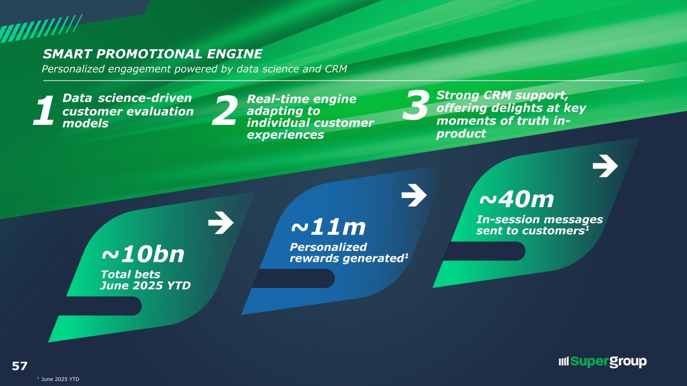 57 1 Data science-driven customer evaluation models 2 Real-time engine adapting to individual customer experiences ~40m In-session messages sent to customers1 ~10bn Total bets June 2025 YTD ~11m Personalized rewards generated1 3 Strong CRM support, offering delights at key moments of truth in- product SMART PROMOTIONAL ENGINE Personalized engagement powered by data science and CRM 1 June 2025 YTD