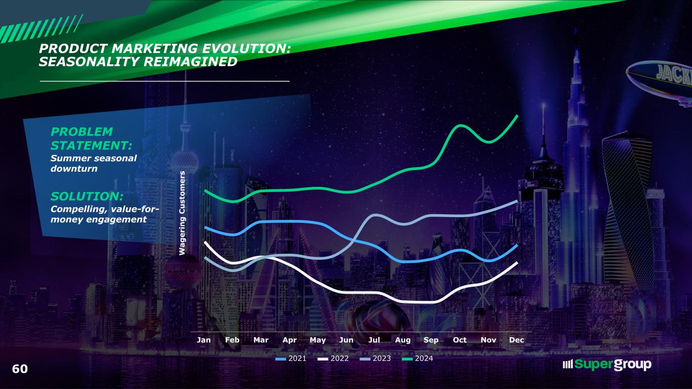 60 W ag er in g C u st o m er s 2021 2022 2023 2024 Jan Feb Mar Apr May Jun Jul Aug Sep Oct Nov Dec PROBLEM STATEMENT: Summer seasonal downturn SOLUTION: Compelling, value-for- money engagement PRODUCT MARKETING EVOLUTION: SEASONALITY REIMAGINED