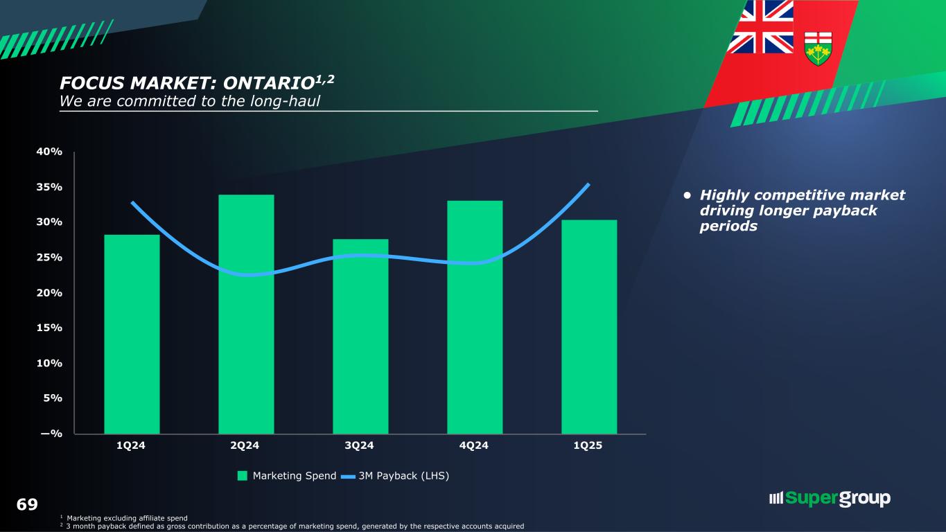Marketing Spend 3M Payback (LHS) 100% 1Q24 2Q24 3Q24 4Q24 1Q25 —% 25% 50% 75% 100% 125% 150% 175% 200% 68 1 Canada excluding Ontario 2 Marketing excluding affiliate spend 3 3 month payback defined as gross contribution as a percentage of marketing spend, generated by the respective accounts acquired REST OF CANADA1,2,3: SCALING SPEND WITH CONSISTENT EFFECTIVENESS Driving growth with disciplined investment