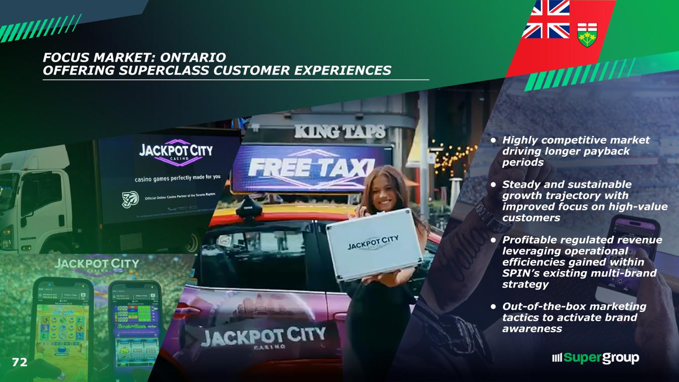 72 FOCUS MARKET: ONTARIO OFFERING SUPERCLASS CUSTOMER EXPERIENCES • Highly competitive market driving longer payback periods • Steady and sustainable growth trajectory with improved focus on high-value customers • Profitable regulated revenue leveraging operational efficiencies gained within SPIN’s existing multi-brand strategy • Out-of-the-box marketing tactics to activate brand awareness