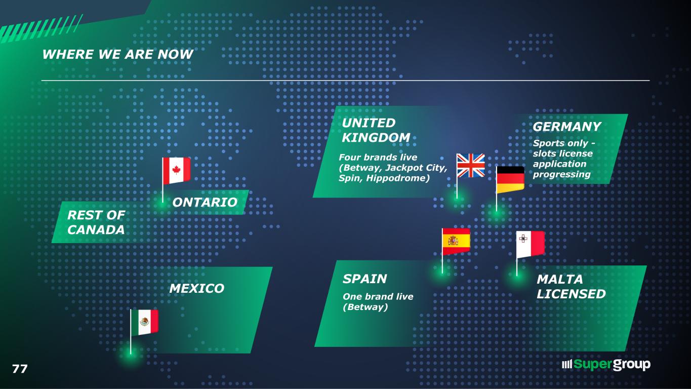 77 WHERE WE ARE NOW ONTARIO REST OF CANADA MEXICO UNITED KINGDOM Four brands live (Betway, Jackpot City, Spin, Hippodrome) GERMANY Sports only - slots license application progressing SPAIN MALTA LICENSEDOne brand live (Betway)