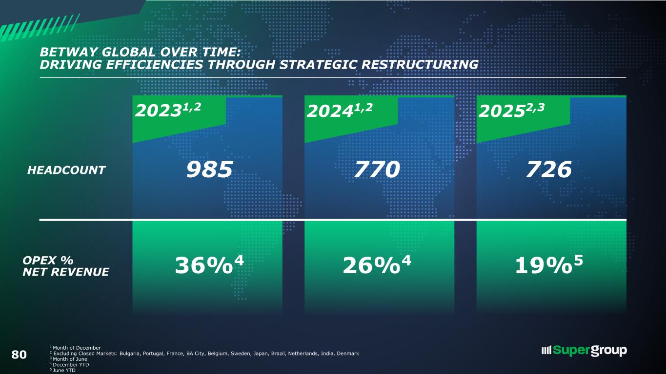 BETWAY GLOBAL OVER TIME: DRIVING EFFICIENCIES THROUGH STRATEGIC RESTRUCTURING 80 20231,2 20241,2 20252,3 HEADCOUNT 770 726985 OPEX % NET REVENUE 26%4 19%536%4 1 Month of December 2 Excluding Closed Markets: Bulgaria, Portugal, France, BA City, Belgium, Sweden, Japan, Brazil, Netherlands, India, Denmark 3 Month of June 4 December YTD 5 June YTD