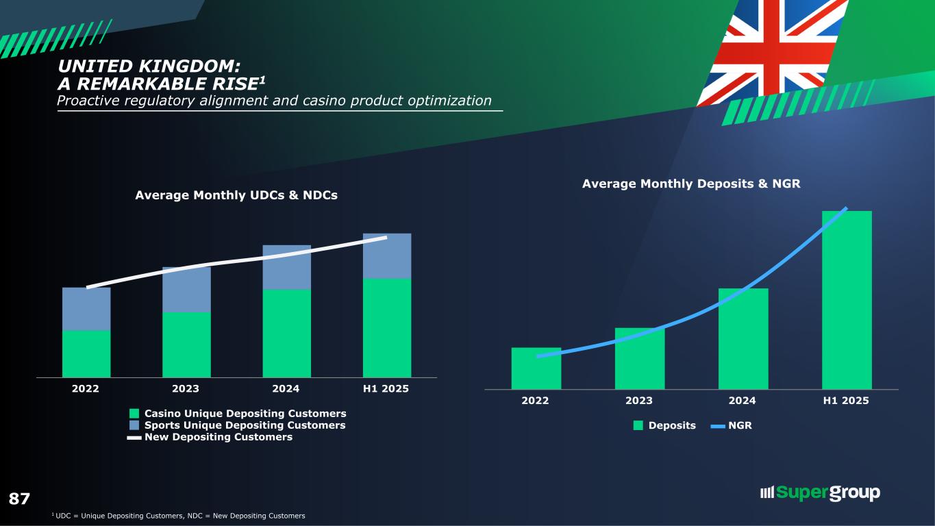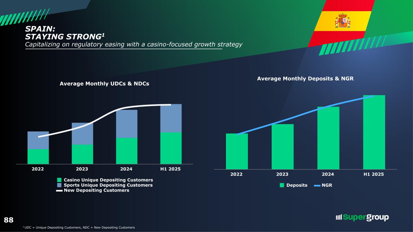 87 1 UDC = Unique Depositing Customers, NDC = New Depositing Customers UNITED KINGDOM: A REMARKABLE RISE1 Average Monthly UDCs & NDCs Casino Unique Depositing Customers Sports Unique Depositing Customers New Depositing Customers 2022 2023 2024 H1 2025 Average Monthly Deposits & NGR Deposits NGR 2022 2023 2024 H1 2025 Proactive regulatory alignment and casino product optimization