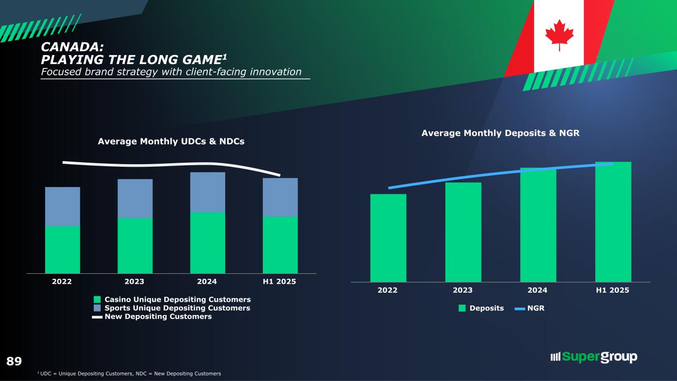 Capitalizing on regulatory easing with a casino-focused growth strategy SPAIN: STAYING STRONG1 Average Monthly UDCs & NDCs Casino Unique Depositing Customers Sports Unique Depositing Customers New Depositing Customers 2022 2023 2024 H1 2025 Average Monthly Deposits & NGR Deposits NGR 2022 2023 2024 H1 2025 88 1 UDC = Unique Depositing Customers, NDC = New Depositing Customers