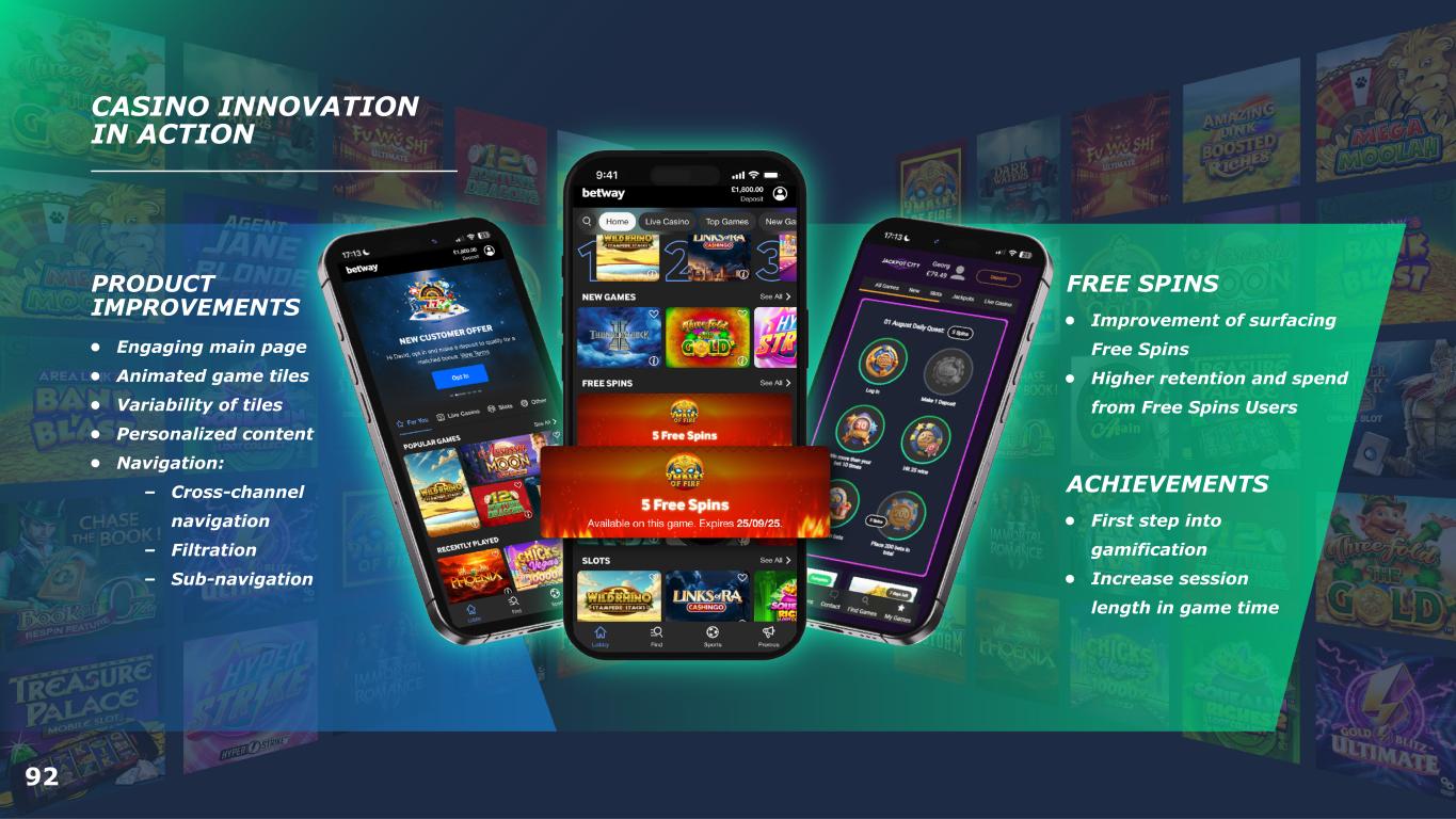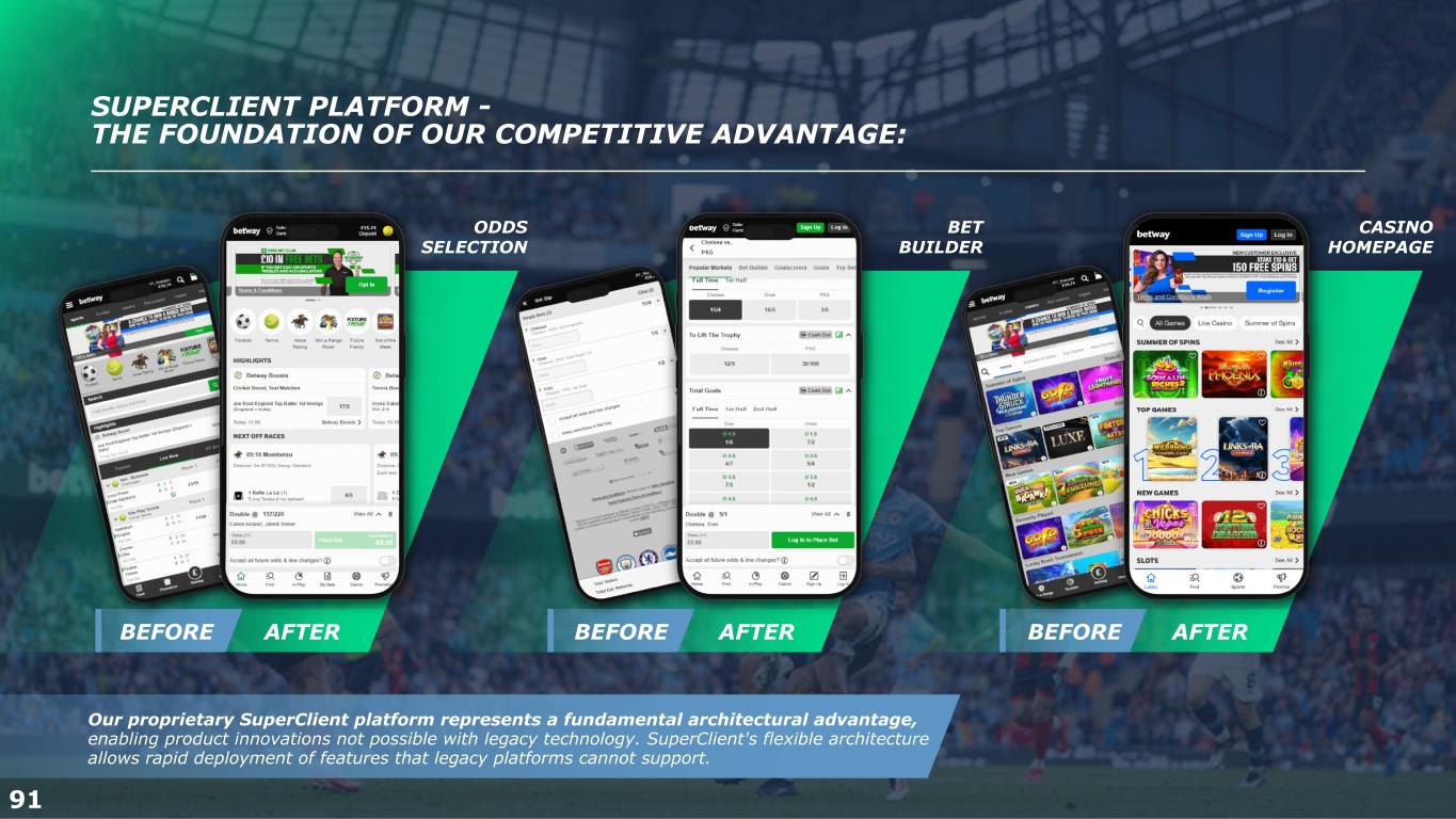 91 Our proprietary SuperClient platform represents a fundamental architectural advantage, enabling product innovations not possible with legacy technology. SuperClient's flexible architecture allows rapid deployment of features that legacy platforms cannot support. BEFORE AFTER BEFORE AFTER BEFORE AFTER ODDS SELECTION BET BUILDER CASINO HOMEPAGE SUPERCLIENT PLATFORM - THE FOUNDATION OF OUR COMPETITIVE ADVANTAGE: