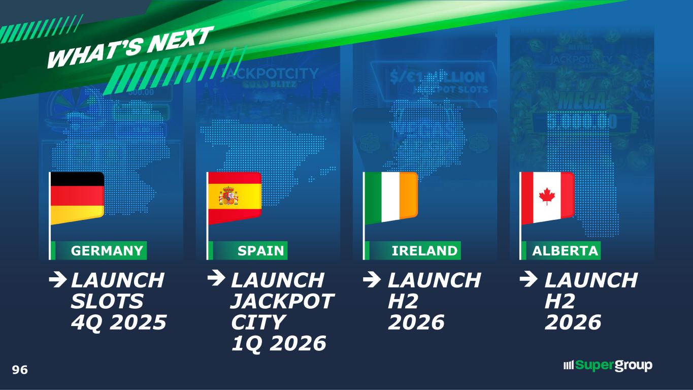 96 LAUNCH H2 2026 LAUNCH JACKPOT CITY 1Q 2026 LAUNCH SLOTS 4Q 2025 LAUNCH H2 2026 ALBERTASPAINGERMANY IRELAND
