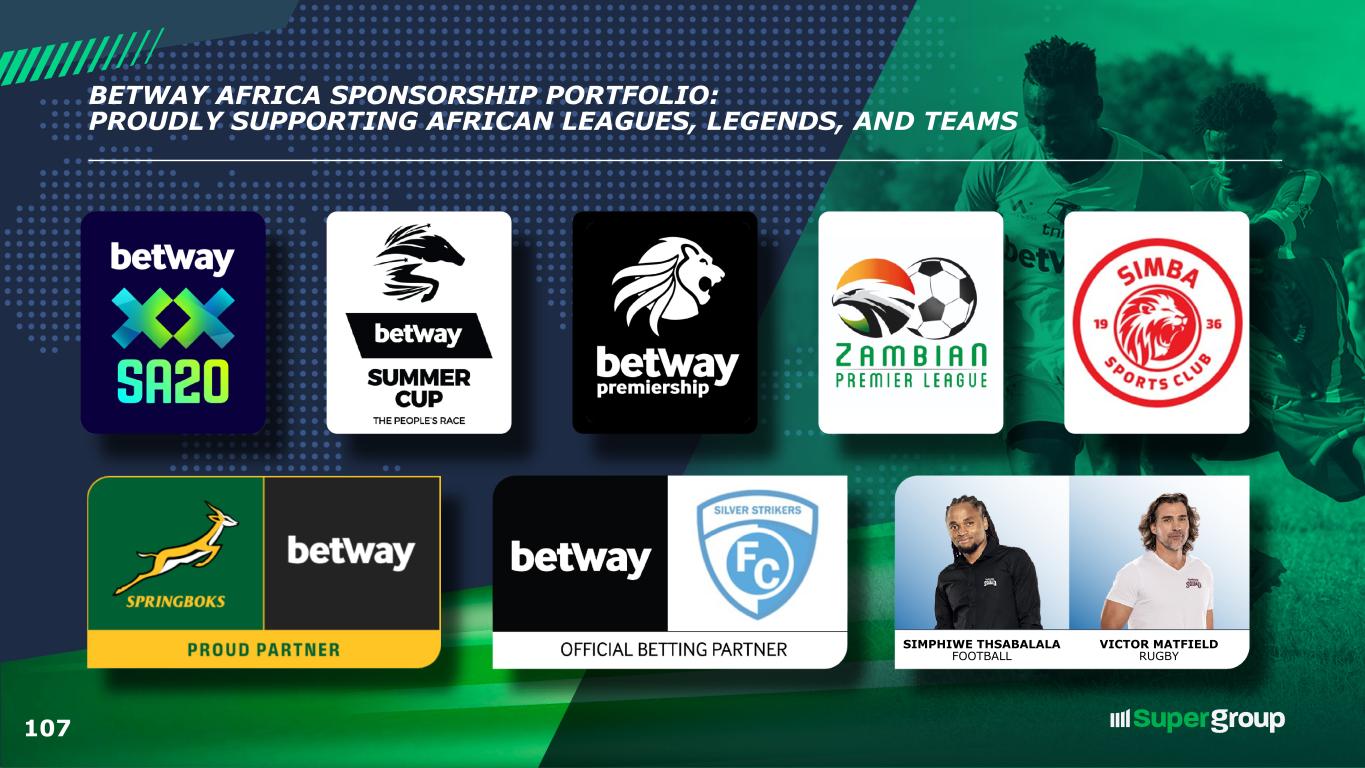 107 BETWAY AFRICA SPONSORSHIP PORTFOLIO: PROUDLY SUPPORTING AFRICAN LEAGUES, LEGENDS, AND TEAMS SIMPHIWE THSABALALA FOOTBALL VICTOR MATFIELD RUGBY