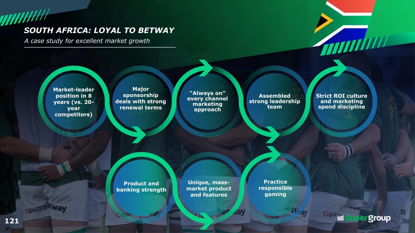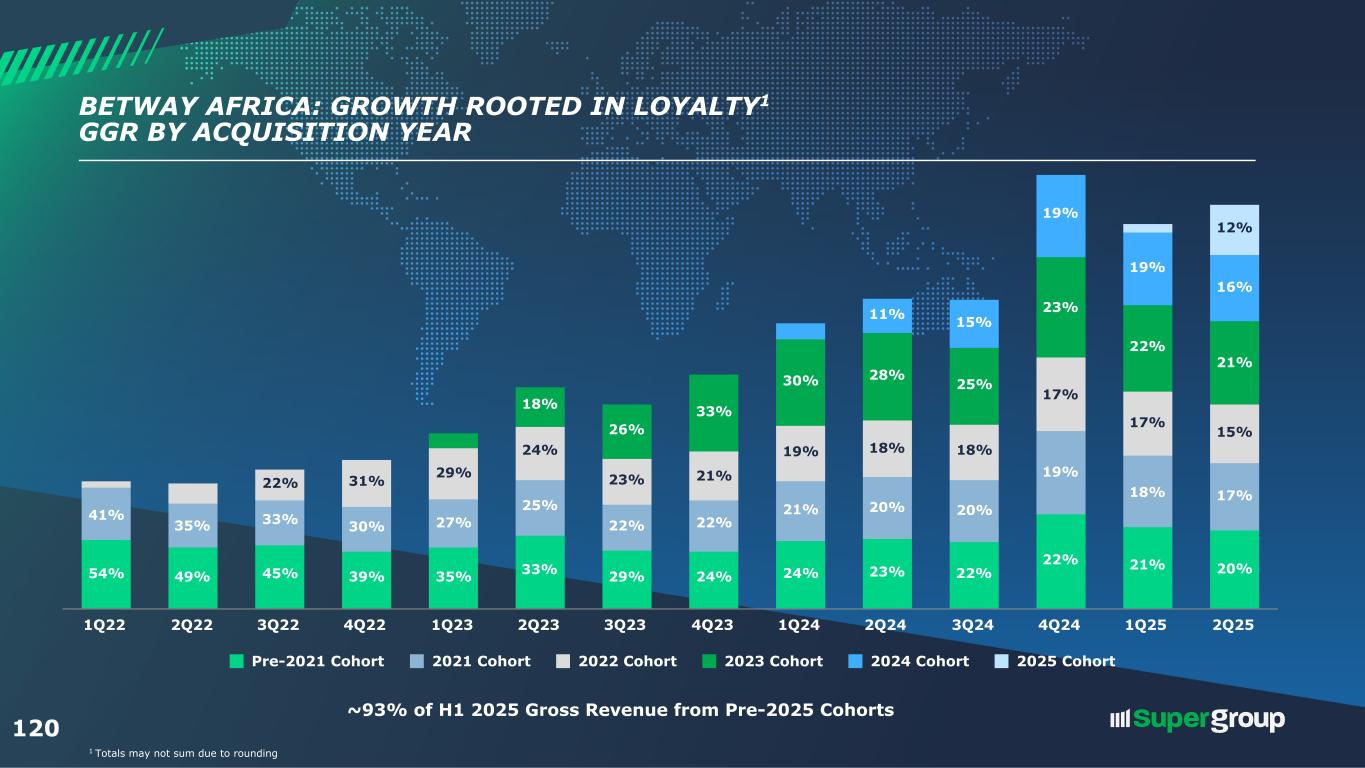 120 Pre-2021 Cohort 2021 Cohort 2022 Cohort 2023 Cohort 2024 Cohort 2025 Cohort 1Q22 2Q22 3Q22 4Q22 1Q23 2Q23 3Q23 4Q23 1Q24 2Q24 3Q24 4Q24 1Q25 2Q25 ~93% of H1 2025 Gross Revenue from Pre-2025 Cohorts 49% 45% 39% 35% 33% 29% 20% 17% 15% 21% 16% 21% 18% 17% 22% 19% 12% 24% 41% 35% 33% 22% 30% 31% 27% 29% 25% 24% 18% 22% 23% 26% 22% 21% 33% 24% 21% 19% 30% 23% 20% 18% 28% 11% 22% 20% 18% 25% 15% 22% 19% 17% 23% 19% BETWAY AFRICA: GROWTH ROOTED IN LOYALTY1 GGR BY ACQUISITION YEAR 54% 1 Totals may not sum due to rounding