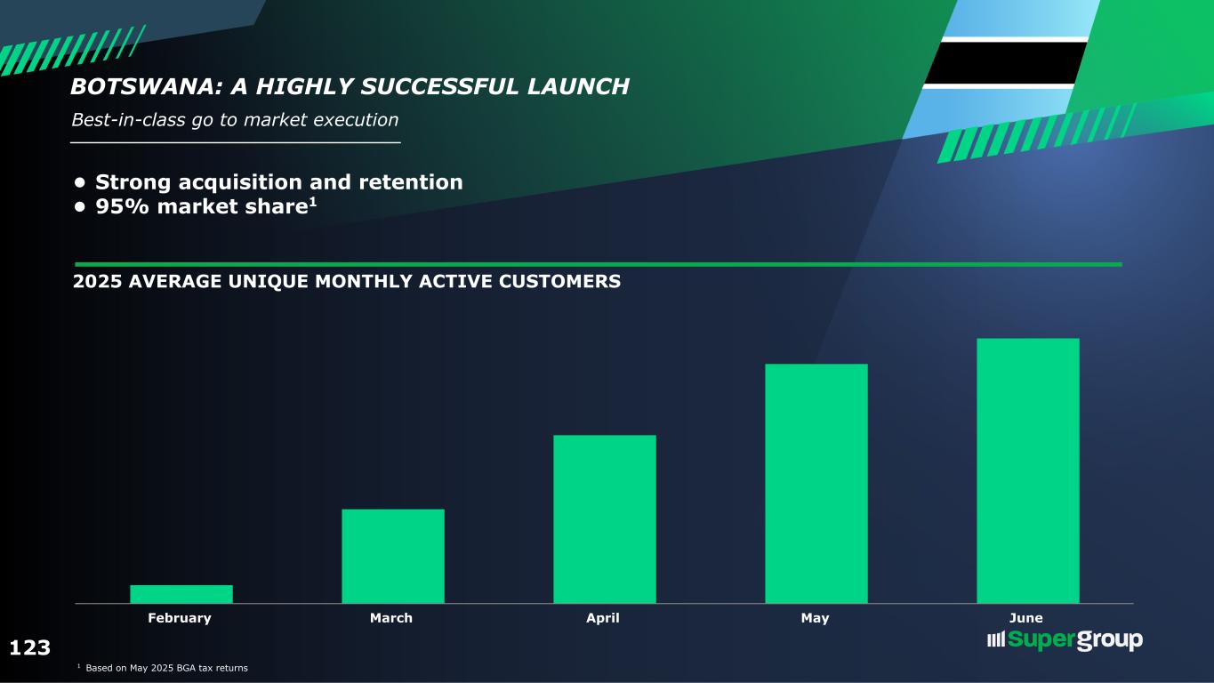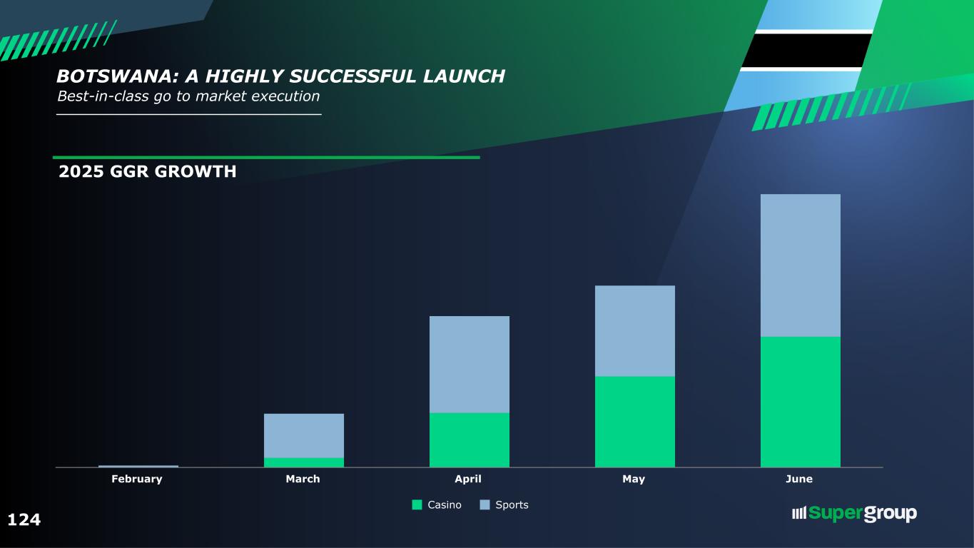Casino Sports February March April May June 124 BOTSWANA: A HIGHLY SUCCESSFUL LAUNCH 2025 GGR GROWTH Best-in-class go to market execution