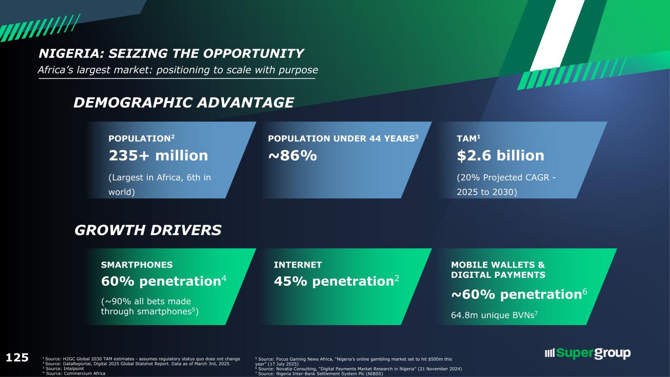 Africa’s largest market: positioning to scale with purpose 125 TAM1 $2.6 billion (20% Projected CAGR - 2025 to 2030) 1 Source: H2GC Global 2030 TAM estimates - assumes regulatory status quo does not change 2 Source: DataReportal, Digital 2025 Global Statshot Report. Data as of March 3rd, 2025. 3 Source: Intelpoint 4 Source: Commercium Africa POPULATION2 235+ million (Largest in Africa, 6th in world) POPULATION UNDER 44 YEARS3 ~86% DEMOGRAPHIC ADVANTAGE GROWTH DRIVERS INTERNET 45% penetration2 SMARTPHONES 60% penetration4 (~90% all bets made through smartphones5) MOBILE WALLETS & DIGITAL PAYMENTS NIGERIA: SEIZING THE OPPORTUNITY ~60% penetration6 64.8m unique BVNs7 5 Source: Focus Gaming News Africa, “Nigeria’s online gambling market set to hit $500m this year” (17 July 2025) 6 Source: Novatia Consulting, “Digital Payments Market Research in Nigeria” (21 November 2024) 7 Source: Nigeria Inter-Bank Settlement System Plc (NIBSS)