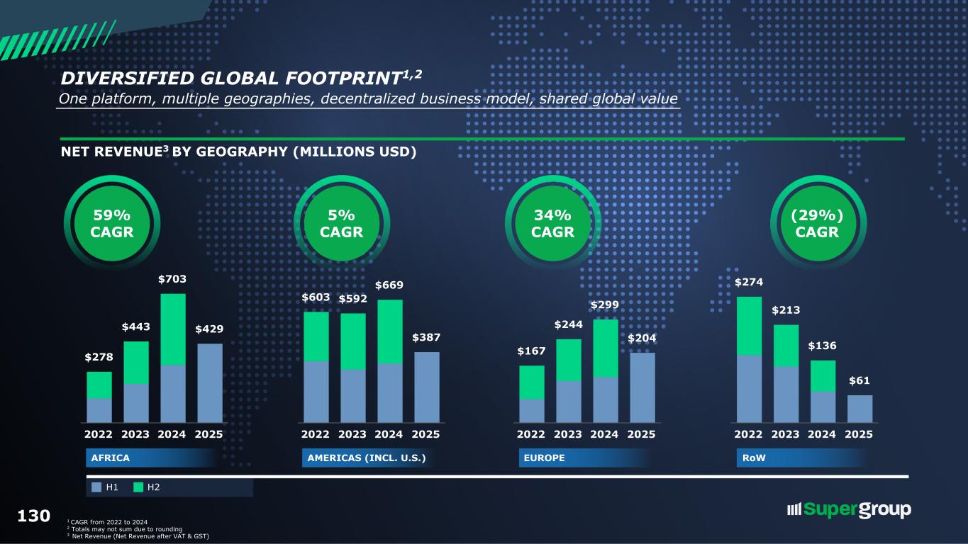 130 AFRICA AMERICAS (INCL. U.S.) EUROPE RoW NET REVENUE3 BY GEOGRAPHY (MILLIONS USD) 59% CAGR 5% CAGR 34% CAGR (29%) CAGR DIVERSIFIED GLOBAL FOOTPRINT1,2 $278 $443 $703 $429 2022 2023 2024 2025 $603 $592 $669 $387 2022 2023 2024 2025 $167 $244 $299 $204 2022 2023 2024 2025 $274 $213 $136 $61 2022 2023 2024 2025 H1 H2 1 CAGR from 2022 to 2024 2 Totals may not sum due to rounding 3 Net Revenue (Net Revenue after VAT & GST) One platform, multiple geographies, decentralized business model, shared global value