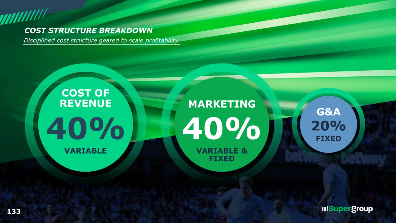 133 COST STRUCTURE BREAKDOWN 40% 40% 20% COST OF REVENUE VARIABLE MARKETING VARIABLE & FIXED G&A FIXED Disciplined cost structure geared to scale profitability