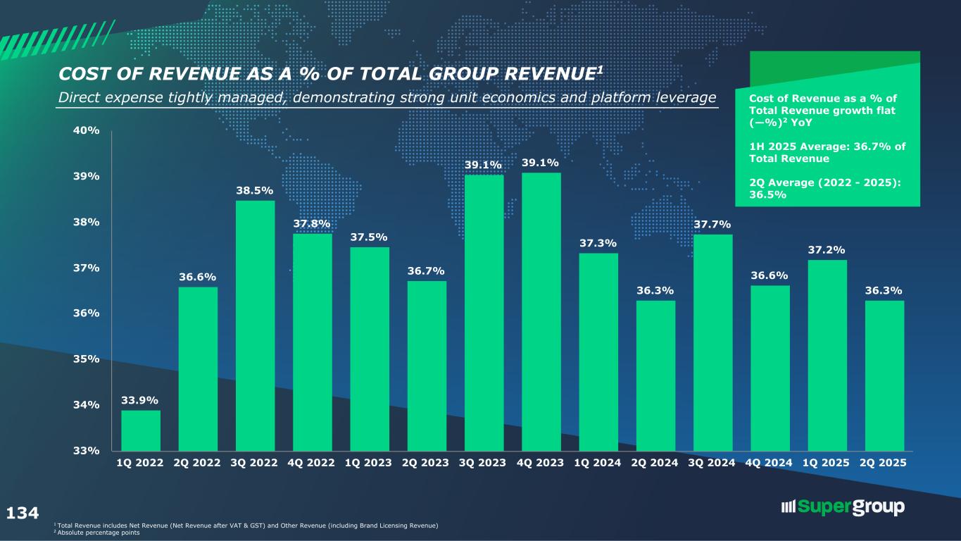 COST OF REVENUE AS A % OF TOTAL GROUP REVENUE1 134 1 Total Revenue includes Net Revenue (Net Revenue after VAT & GST) and Other Revenue (including Brand Licensing Revenue) 2 Absolute percentage points 33.9% 36.6% 38.5% 37.8% 37.5% 36.7% 39.1% 39.1% 37.3% 36.3% 37.7% 36.6% 37.2% 36.3% 1Q 2022 2Q 2022 3Q 2022 4Q 2022 1Q 2023 2Q 2023 3Q 2023 4Q 2023 1Q 2024 2Q 2024 3Q 2024 4Q 2024 1Q 2025 2Q 2025 33% 34% 35% 36% 37% 38% 39% 40% Cost of Revenue as a % of Total Revenue growth flat (—%)2 YoY 1H 2025 Average: 36.7% of Total Revenue 2Q Average (2022 - 2025): 36.5% Direct expense tightly managed, demonstrating strong unit economics and platform leverage