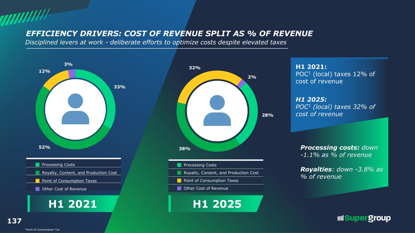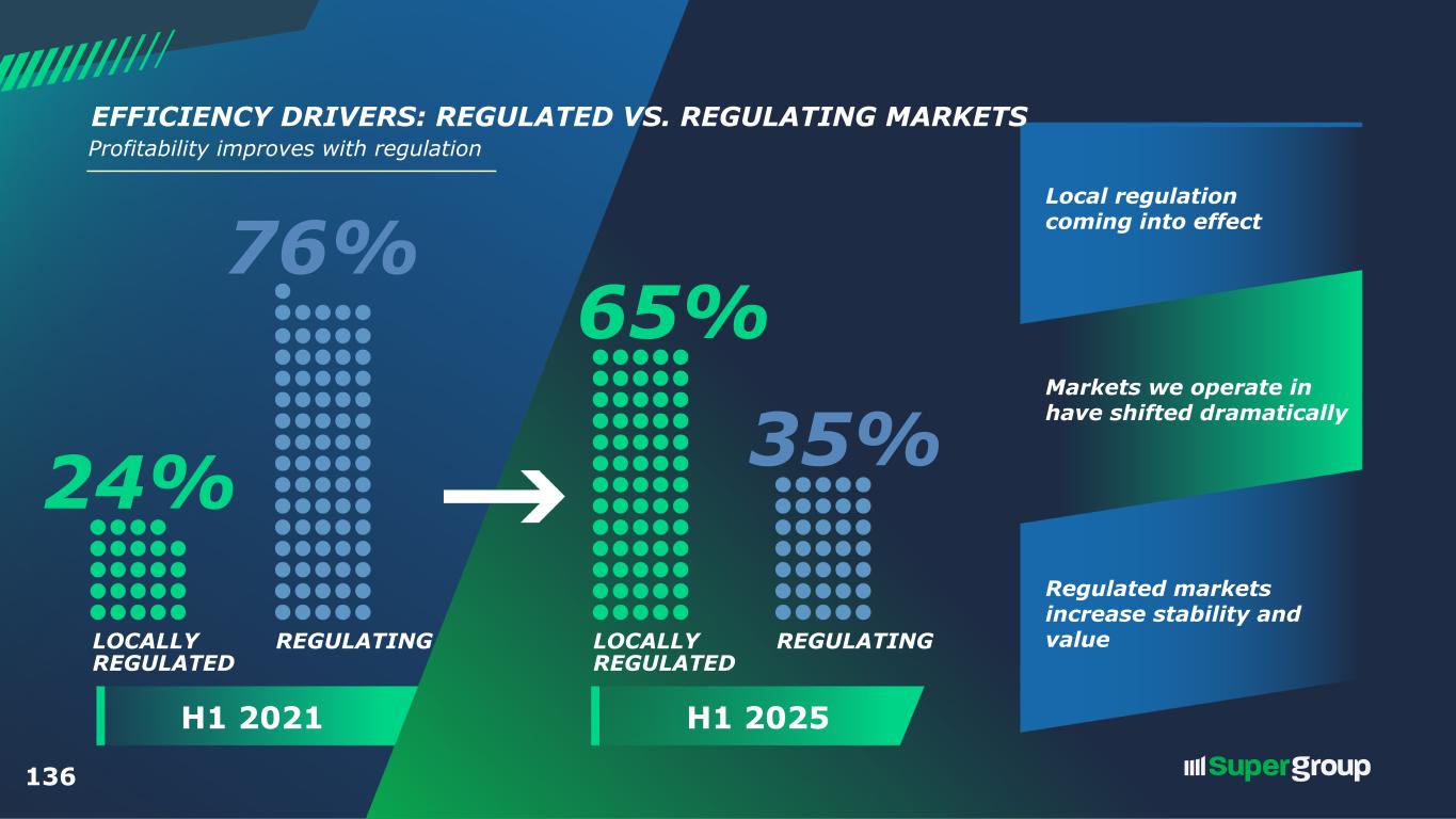 136 Local regulation coming into effect Markets we operate in have shifted dramatically Regulated markets increase stability and value EFFICIENCY DRIVERS: REGULATED VS. REGULATING MARKETS LOCALLY REGULATED REGULATING LOCALLY REGULATED REGULATING 24% 76% 65% 35% H1 2021 H1 2025 Profitability improves with regulation