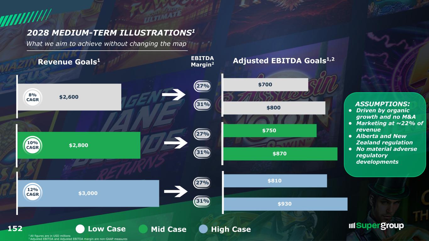 $750 $870 $700 $800 $2,600 $2,800 $3,000 152 2028 MEDIUM-TERM ILLUSTRATIONS1 What we aim to achieve without changing the map Revenue Goals1 EBITDA Margin2 $810 $930 ASSUMPTIONS: • Driven by organic growth and no M&A • Marketing at ~22% of revenue • Alberta and New Zealand regulation • No material adverse regulatory developments 27% 31% 8% CAGR 10% CAGR 12% CAGR 27% 31% 27% 31% Adjusted EBITDA Goals1,2 Low Case Mid Case High Case 1 All figures are in USD millions 2 Adjusted EBITDA and Adjusted EBITDA margin are non-GAAP measures