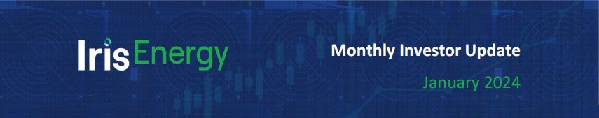 This investor update includes “forward-looking statements” within the meaning of the Private Securities Litigation Reform Act of 1995. Forward-looking statements generally relate to future events or Iris Energy’s future financial or operating performance. For example, forward-looking statements include but are not limited to the Company’s business strategy, expected operational and financial results, and expected increase in power capacity and hashrate. In some cases, you can identify forward-looking statements by terminology such as “anticipate,” “believe,” “may,” “can,” “should,” “could,” “might,” “plan,” “possible,” “project,” “strive,” “budget,” “forecast,” “expect,” “intend,” “target”, “will,” “estimate,” “predict,” “potential,” “continue,” “scheduled” or the negatives of these terms or variations of them or similar terminology, but the absence of these words does not mean that statement is not forward-looking. Such forward-looking statements are subject to risks, uncertainties, and other factors which could cause actual results to differ materially from those expressed or implied by such forward-looking statements. In addition, any statements or information that refer to expectations, beliefs, plans, projections, objectives, performance or other characterizations of future events or circumstances, including any underlying assumptions, are forward-looking.