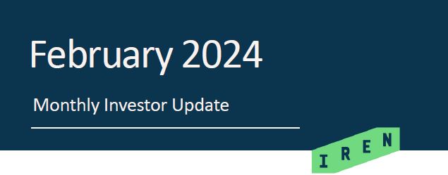 •    On February 15, 2024, IREN reported financial results for the 3 and 6 months ended December 31, 2023
