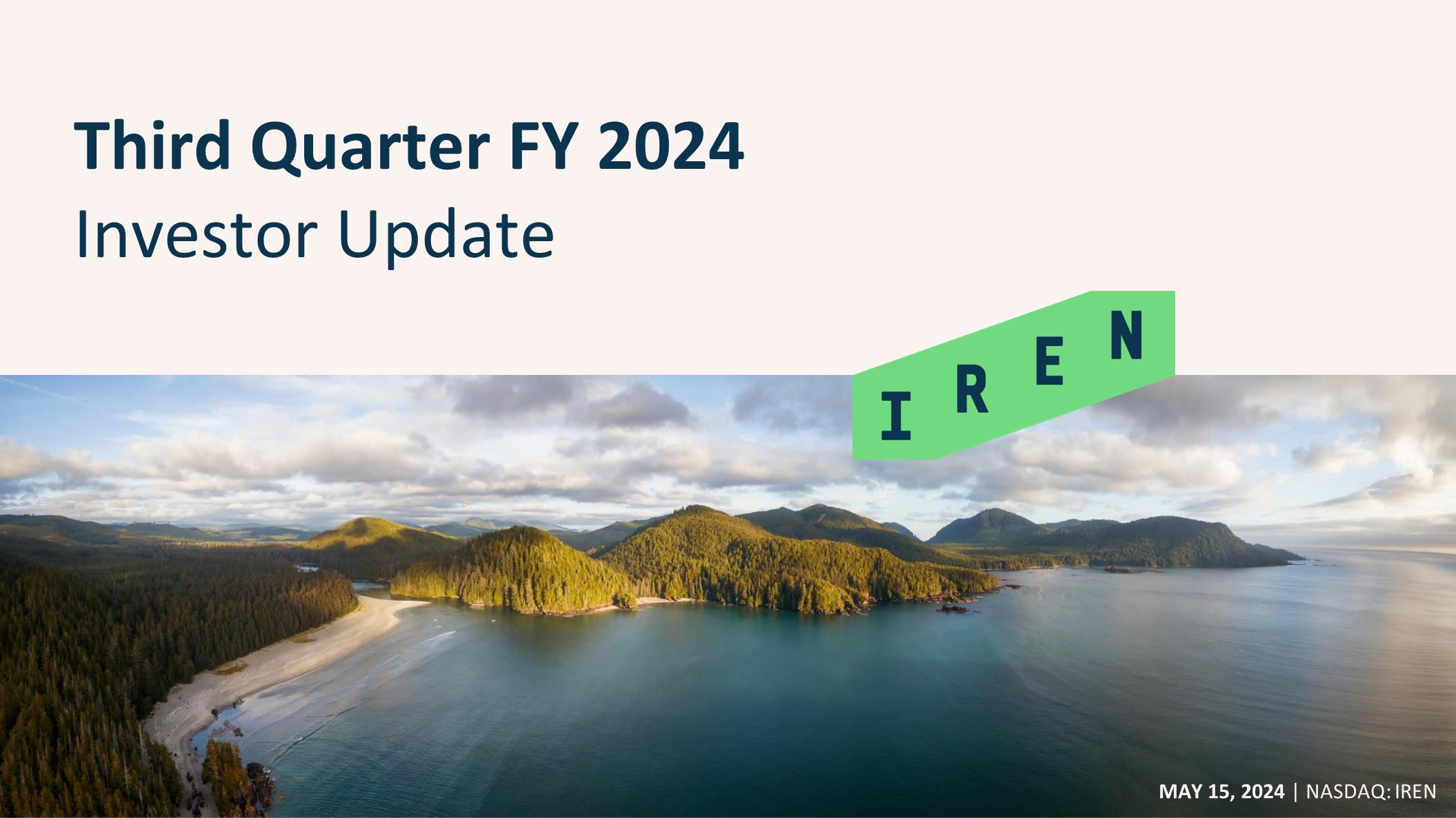 Third Quarter FY 2024  Investor Update  MAY 15, 2024 | NASDAQ: IREN