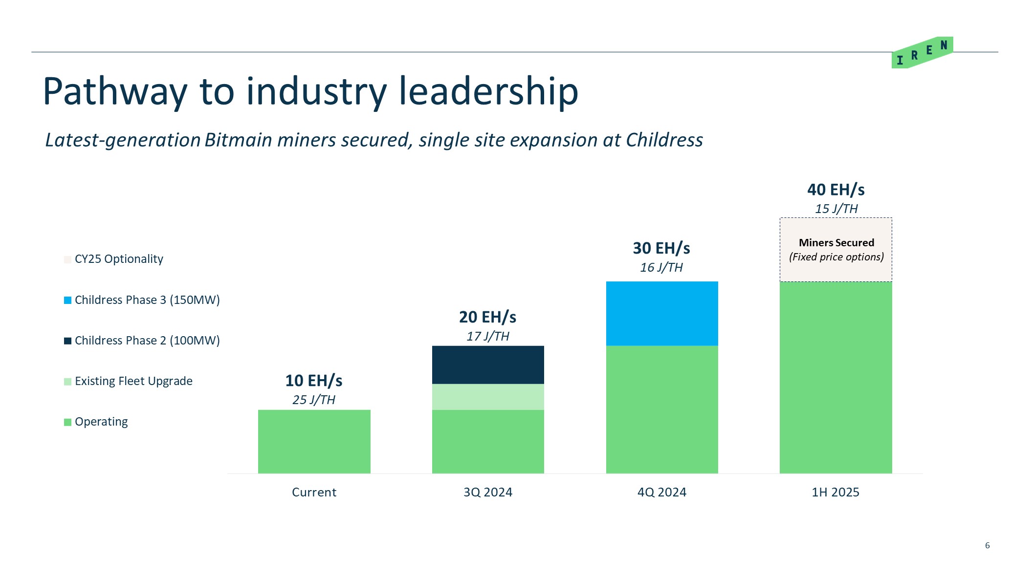 Pathway to industry leadership  Latest-generation Bitmain miners secured, single site expansion at Childress  6
