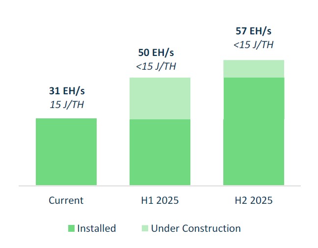 Expanding capacity to 57 EH/s by H2 2025, with 50 EH/s on track for H1 2025