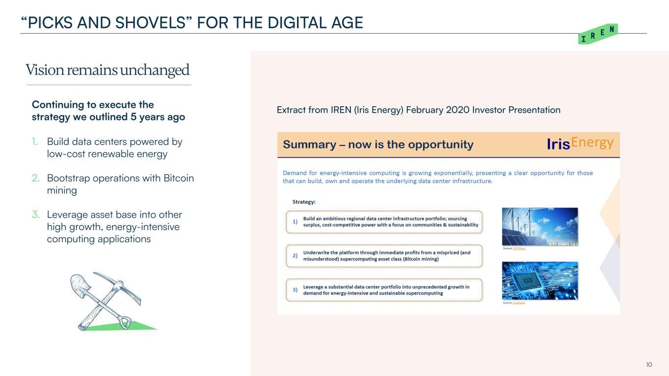 0 20 40 60 80 100 120 Oracle Meta Google Microsoft Amazon Forecast as at Q1 2024 Forecasts as at Q1 2025 ESCALATING POWER SHORTAGE 9 Source: Morgan Stanley Research Available US Grid Capacity US DCs Under Construction Potential Shortfall US Power Needed '25-28 0 10 20 30 40 50 60 Estimated ~36GW shortfall in power for US data centersHyperscaler capex forecasts for 2025 Source: Morgan Stanley Research ($b) (GW) IREN uniquely positioned with 2,310MW of grid-connected power secured