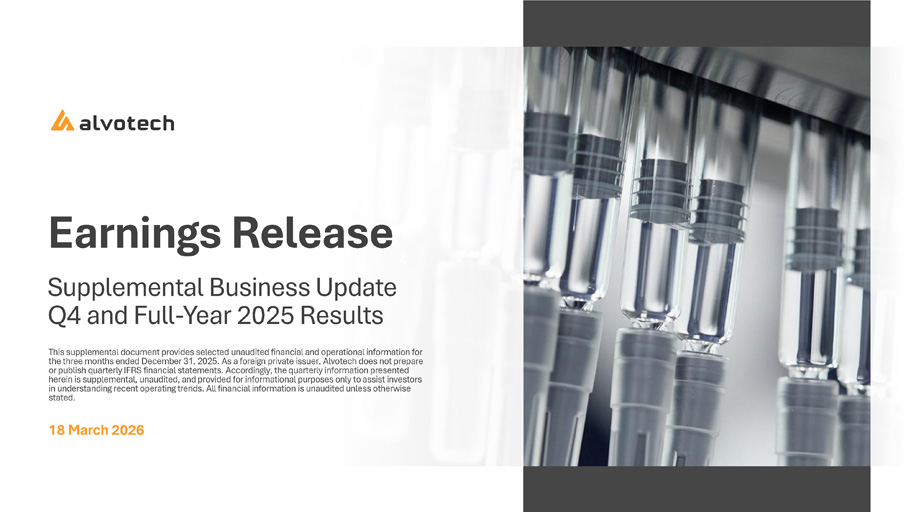 Supplemental Business Update Q4 and Full - Year 2025 Results This supplemental document provides selected unaudited financial and operational information for the three months ended December 31, 2025. As a foreign private issuer, Alvotech does not prepare or publish quarterly IFRS financial statements. Accordingly, the quarterly information presented herein is supplemental, unaudited, and provided for informational purposes only to assist investors in understanding recent operating trends. All financial information is unaudited unless otherwise stated. 18 March 2026 Earnings Release