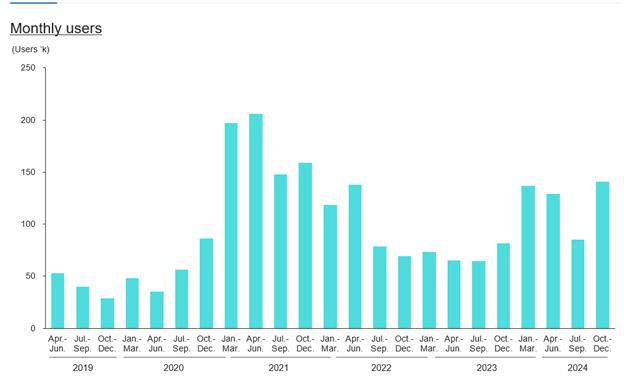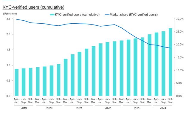 Cash and cash equivalents mainly consist of bank deposits. As of December 31, 2024, we had cash and cash equivalents of ¥12,673 million. As of December 31, 2024, we also had cash segregated as deposits of ¥60,648 million. In accordance with Japanese laws and regulations, from the year ended March 31, 2021, at least 100% of the legal tender deposited by customers shall be protected by trust companies. Therefore, cash deposited by customers is accounted for under different accounts depending on whether it is protected by trust companies or not. Additionally, Coincheck entered into a line of credit with Monex Finance Corporation, with aggregate commitments as of March 31, 2024, and December 31, 2024 of ¥6,000 million and ¥6,000 million, respectively. No amounts were outstanding under this arrangement as of March 31, 2024 or December 31, 2024, after drawing down and subsequently repaying ¥6,000 million in June of 2024. Coincheck Parent entered into its own commitment line contract of 2,540 million yen as a debtor with Monex Finance Corporation as of December 31, 2024, for the purpose of stable operating capital. As of December 31, 2024, the balance outstanding under this was ¥2,526 million.