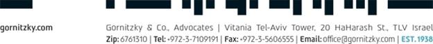 We are members of the Bar of the State of Israel and we express no opinion as to any matter relating to the laws of any jurisdiction other than the laws of State of Israel and have not, for the purpose of giving the opinions set forth herein, made any investigation of the laws of any jurisdiction other than State of Israel and have not, for the purpose of giving the opinions set forth herein, made any investigation of the laws of any jurisdiction other than the State of Israel. This opinion letter is effective only as of its date and the opinions expressed herein are based upon the law in effect (and published or otherwise generally available) on the date hereof, and we assume no obligation to revise or supplement this opinion letter should any such law be changed by legislative action, judicial decision or otherwise or in the event of any change in facts, circumstances, events or developments of which we become aware. This opinion letter is expressly limited to the matters set forth above, and we render no opinion, whether by implication or otherwise, as to any other matters. In addition, we render no opinion in relation to any representation made or given in the Registration Statement.