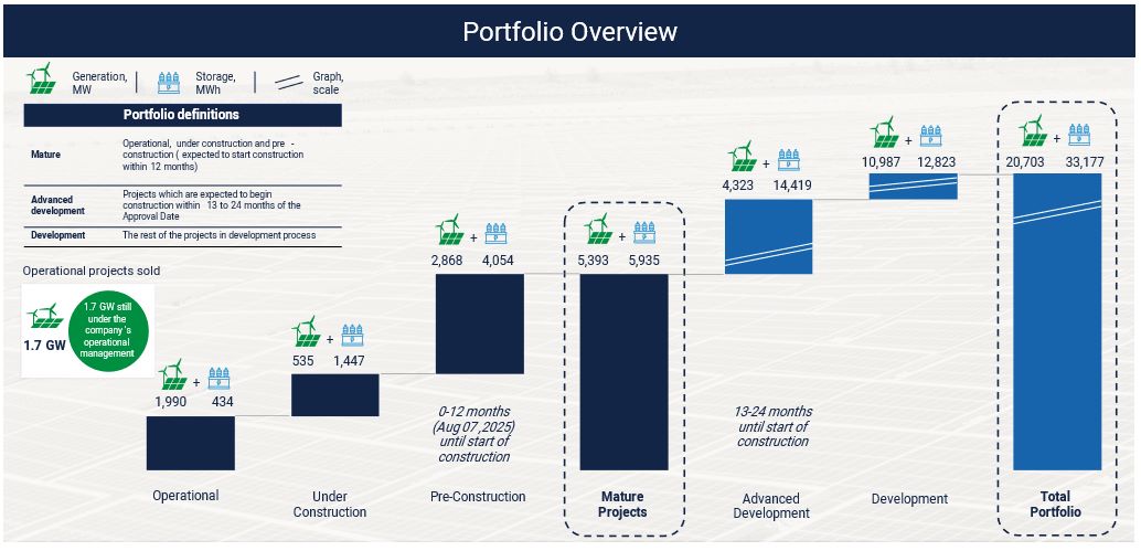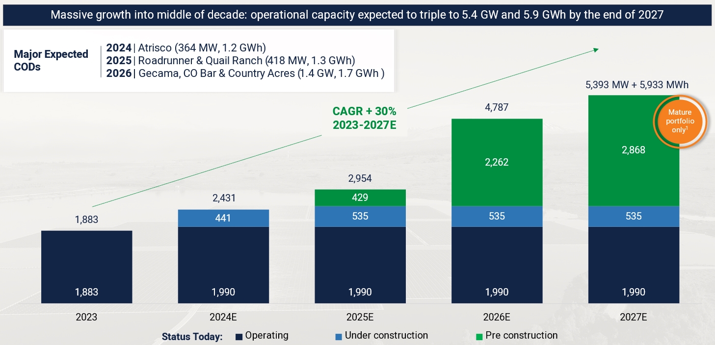 Operational portfolio grew by 75 MW and 94 MWh. 234 MWh storage capacity added to the Mature Project portfolio since the last quarter’s earnings report.