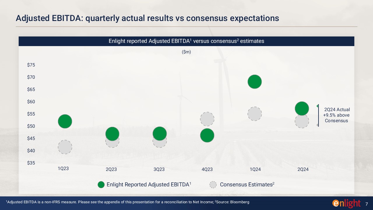 Strong results and growth in the first half of 2024  Growth driven by new operational projects and healthy production levels  ($m)  6  1  +42%  +33%  -39%  -4%  H1 2024 versus H1 2023  1H23 boosted by decreased earnout, LD recognition and FX impacts on financial income  1Adjusted EBITDA is a non-IFRS measure. Please see the appendix of this presentation for a reconciliation to Net Income