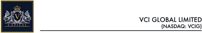 KUALA LUMPUR, Malaysia, November 1, 2024 – VCI Global Limited (NASDAQ: VCIG) (Frankfurt: H0T) (“VCI Global” or the “Company”), a diversified holding company with expertise in consulting, fintech, AI, robotics and cybersecurity, is pleased to announce the approved 1-for-49 stock split of the Company’s common stock with no par value, effective at 12:01 a.m. Eastern Time on 5 November, 2024 (the “Reverse Stock Split”). VCI Global’s common stock will continue to be traded on the Nasdaq Capital Market on a split-adjusted basis beginning on 5 November, 2024, under the Company’s existing trading symbol “VCIG” with the new CUSIP number G98218 202.