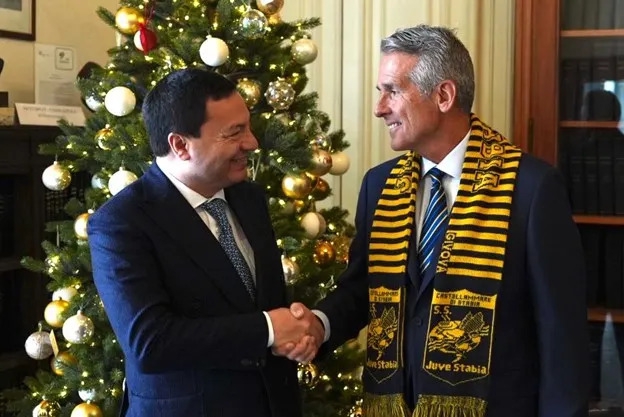 Juve Stabia Club President Andrea Langella (left) with Brera Holdings PLC Executive Chairman Daniel McClory (right)