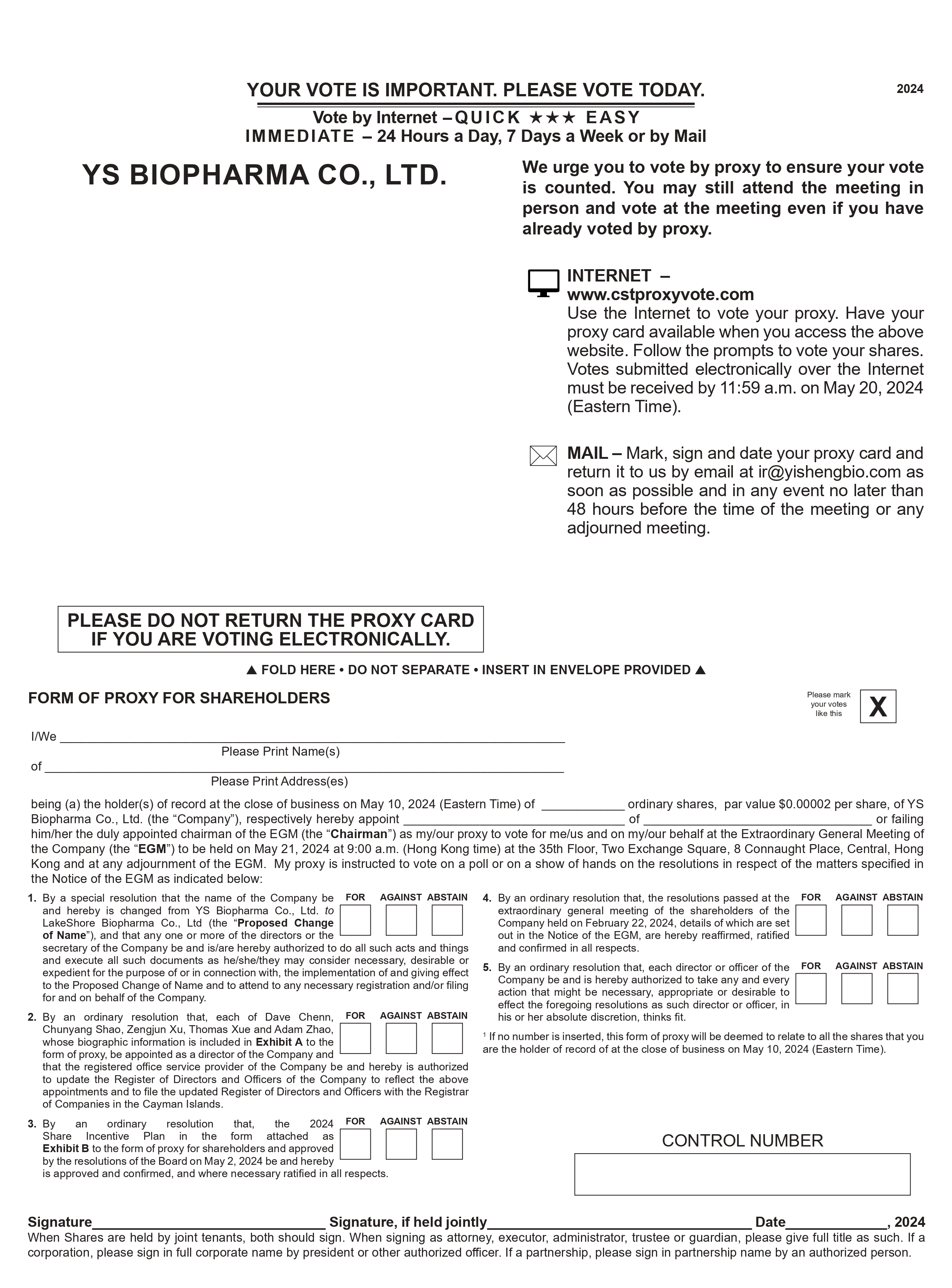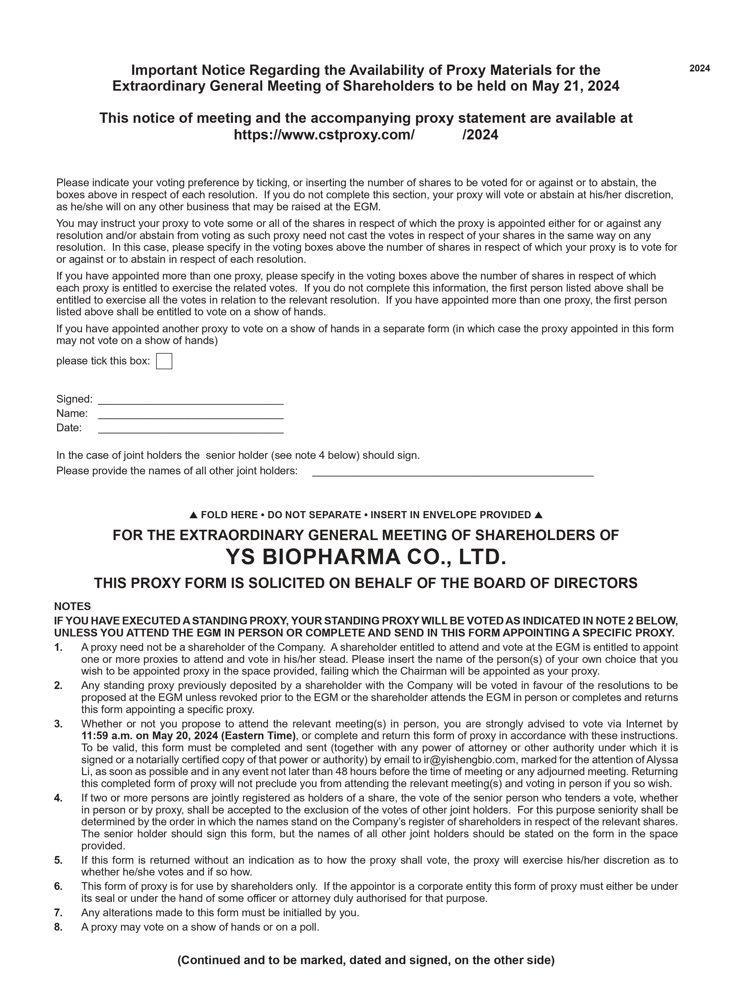 EX-99.3 4 ea020531401ex99-3_ysbio.htm FORM OF PROXY FOR EXTRAORDINARY GENERAL MEETING