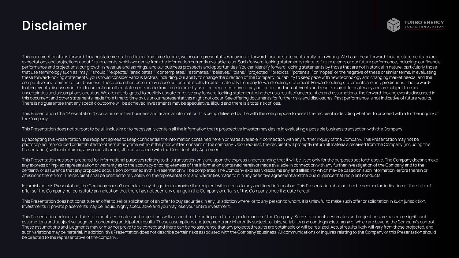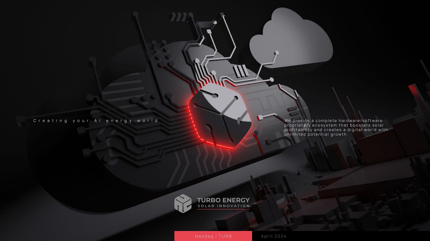 Nasdaq I TURB April 202 4 C r e a t i n g y o u r A I e n e r g y w o r l d We pr o vide a c omplet e har dw ar e/ softw ar e pr oprietar y ec o s yst e m that boo st er s solar pr of itabilit y an d cr e at es a digital w orld with unlimit ed pot e ntial gr o wth.