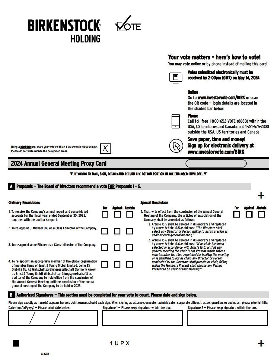 EX-99.2 3 birk_ex992.htm REGISTERED SHAREHOLDERS birk_ex992.htm