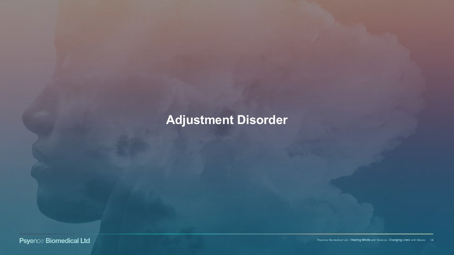 14 Psyence Biomedical Ltd. / Healing Minds with Science . Changing Lives with Nature Adjustment Disorder