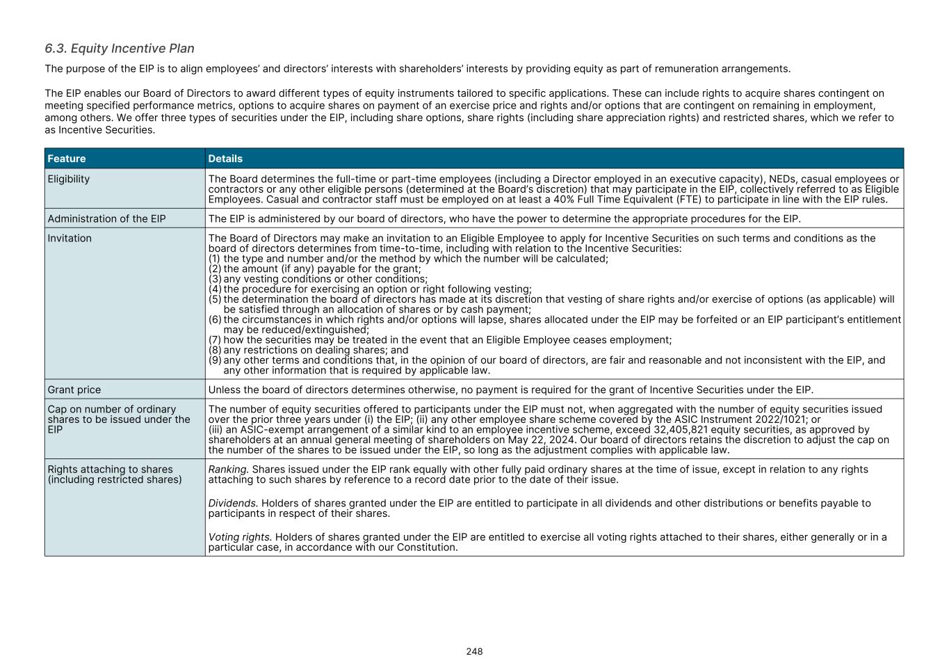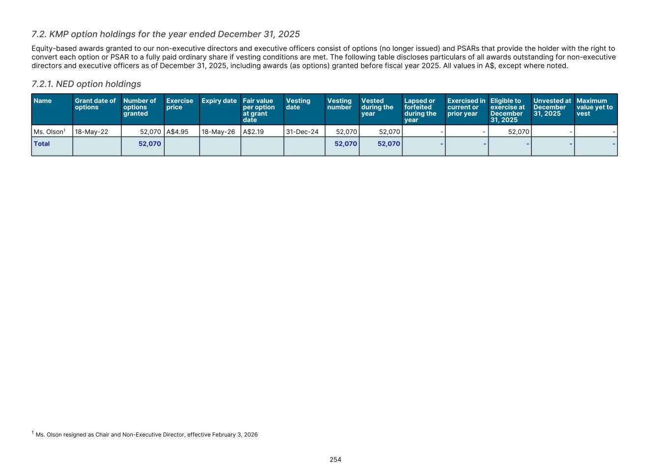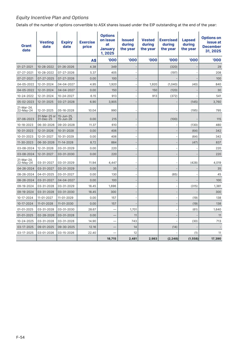 Equity Incentive Plan and Options Details of the number of options convertible to ASX shares issued under the EIP outstanding at the end of the year: Grant date Vesting date Expiry date Exercise price Options on issue at January 1, 2025 Issued during the year Vested during the year Exercised during the year Lapsed during the year Options on issue at December 31, 2025 A$ ’000 ’000 ’000 ’000 ’000 ’000 01-27-2021 10-28-2022 01-26-2026 4.38 349 - (320) - 29 07-27-2021 10-28-2022 07-27-2026 5.37 405 - (197) - 208 07-27-2021 07-27-2025 07-27-2026 0.00 100 - - - 100 04-05-2022 12-31-2024 04-04-2027 4.95 1,920 - 1,920 (1,040) (40) 840 04-05-2022 12-31-2024 04-04-2027 0.00 150 - 150 (120) - 30 10-24-2022 12-31-2024 10-24-2027 6.15 913 - 913 (372) - 541 05-02-2023 12-31-2025 03-27-2028 6.90 3,905 - - (145) 3,760 21-Mar-24. 22-May-24 12-31-2025 05-16-2028 10.04 990 - - (195) 795 07-06-2023 31-Mar-25 or 31-Dec-25 15-Jun-25, 15-Jun-28 0.00 215 - (100) - 115 10-18-2023 06-30-2026 09-20-2028 11.37 610 - - (130) 480 10-31-2023 12-31-2026 10-31-2028 0.00 406 - - (64) 342 10-31-2023 12-31-2027 10-31-2029 0.00 406 - - (64) 342 11-30-2023 06-30-2026 11-14-2028 8.72 884 - - (47) 837 03-08-2024 12-31-2026 03-31-2029 0.00 220 - - - 220 03-08-2024 12-31-2027 03-31-2030 0.00 220 - - - 220 21-Mar-24, 22-May-24 03-31-2027 03-31-2029 11.94 4,447 - - (428) 4,019 04-26-2024 03-31-2027 03-31-2029 0.00 35 - - - 35 08-26-2024 04-01-2025 03-31-2027 0.00 130 - (85) - 45 08-26-2024 03-31-2027 04-04-2027 0.00 100 - - - 100 09-19-2024 03-31-2028 03-31-2029 18.45 1,696 - - (315) 1,381 09-19-2024 03-31-2028 03-31-2030 18.45 300 - - - 300 10-17-2024 11-01-2027 11-01-2029 0.00 157 - - (19) 138 10-17-2024 11-01-2028 11-01-2030 0.00 157 - - (19) 138 01-01-2025 03-31-2028 03-31-2030 28.67 — 1,701 - (61) 1,640 01-01-2025 02-28-2026 03-31-2028 0.00 — 11 - - 11 10-24-2025 03-31-2028 03-31-2028 14.90 — 743 - (30) 713 03-17-2025 09-01-2025 09-30-2025 12.16 — 14 (14) - - 03-17-2025 03-01-2026 03-15-2026 22.40 — 12 - (1) 11 18,715 2,481 2,983 (2,248) (1,558) 17,390 F-54