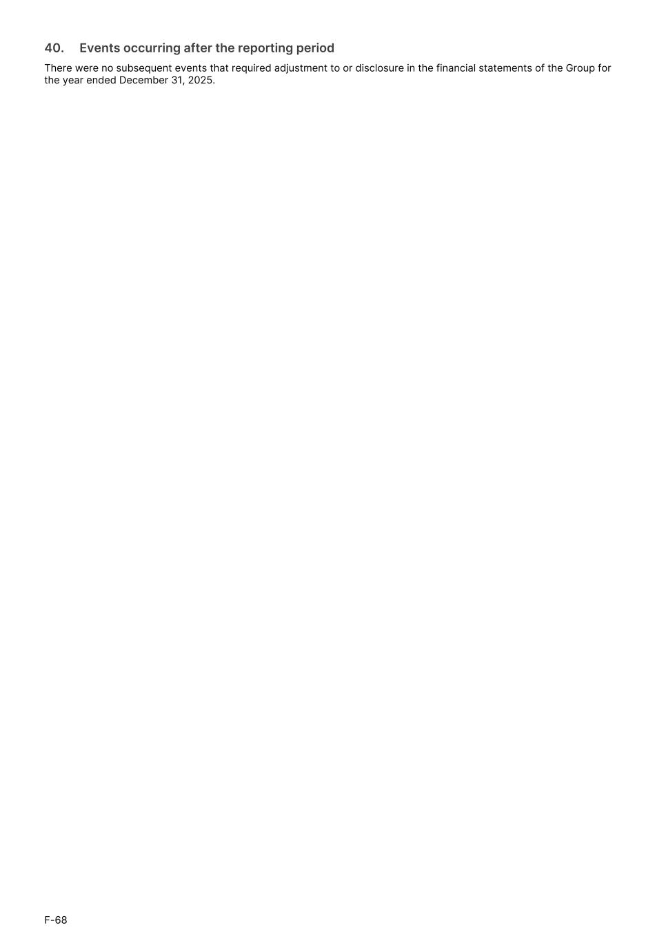 40.     Events occurring after the reporting period There were no subsequent events that required adjustment to or disclosure in the financial statements of the Group for the year ended December 31, 2025. F-68