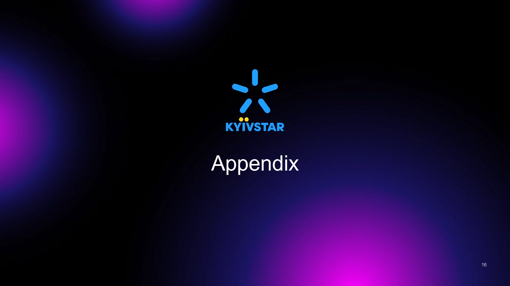 Kyivstar investment highlights World class team: Proven leaders with a track record of resilience through war and robust governance Robust financial profile: We believe we are poised for growth with Ukrainian recovery and digital services expansion Strong balance sheet: Significant financial and strategic flexibility Scarcity value: The only pure play Ukrainian investment opportunity to be publicly listed in the U.S. 1 National advocate: One of the most recognizable brands and a proven long - term leader in Ukraine's vital infrastructure 15