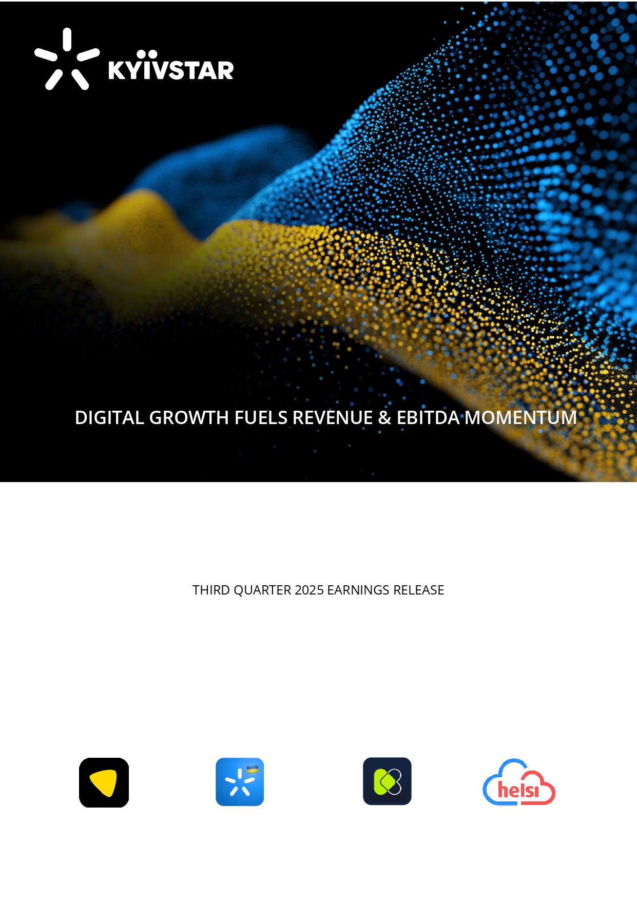 Kyiv, November 10, 2025 – Kyivstar Group Ltd. (“Kyivstar” or the “Group”), Ukraine’s leading digital operator, today announces selected unaudited financial and operating results for the third quarter ended September 30, 2025.