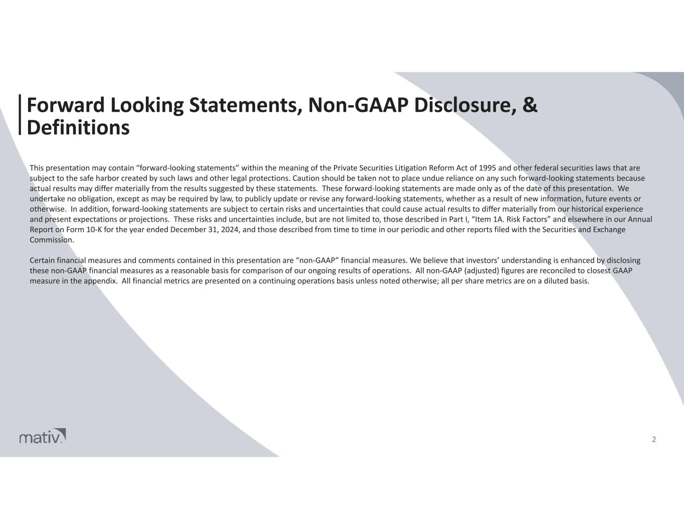 Forward Looking Statements, Non-GAAP Disclosure, & Definitions 2 This presentation may contain “forward-looking statements” within the meaning of the Private Securities Litigation Reform Act of 1995 and other federal securities laws that are subject to the safe harbor created by such laws and other legal protections. Caution should be taken not to place undue reliance on any such forward-looking statements because actual results may differ materially from the results suggested by these statements. These forward-looking statements are made only as of the date of this presentation. We undertake no obligation, except as may be required by law, to publicly update or revise any forward-looking statements, whether as a result of new information, future events or otherwise. In addition, forward-looking statements are subject to certain risks and uncertainties that could cause actual results to differ materially from our historical experience and present expectations or projections. These risks and uncertainties include, but are not limited to, those described in Part I, “Item 1A. Risk Factors” and elsewhere in our Annual Report on Form 10-K for the year ended December 31, 2024, and those described from time to time in our periodic and other reports filed with the Securities and Exchange Commission. Certain financial measures and comments contained in this presentation are “non-GAAP” financial measures. We believe that investors’ understanding is enhanced by disclosing these non-GAAP financial measures as a reasonable basis for comparison of our ongoing results of operations. All non-GAAP (adjusted) figures are reconciled to closest GAAP measure in the appendix. All financial metrics are presented on a continuing operations basis unless noted otherwise; all per share metrics are on a diluted basis.