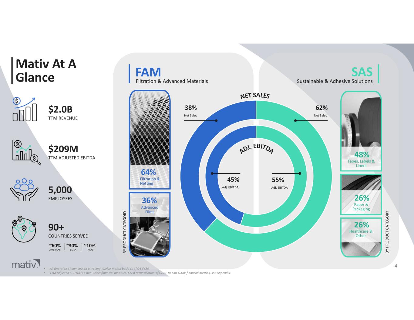 Mativ’s Products Connect, Protect and Purify Our World Every Day Our Cable Wraps Enable the Connection of Offshore Windfarms Our Paper Was Used by Abraham Lincoln and is Loved by K-12 students Our Tapes Were Used in Past 40+ NHL Stanley Cups Our Optical Films Block 99%+ of UV Light Our Filtration Materials are Converted into 350+ Million Filter Elements 3 Our Filters Can Turn 2,000 liters of salt water into drinkable water for less than $1